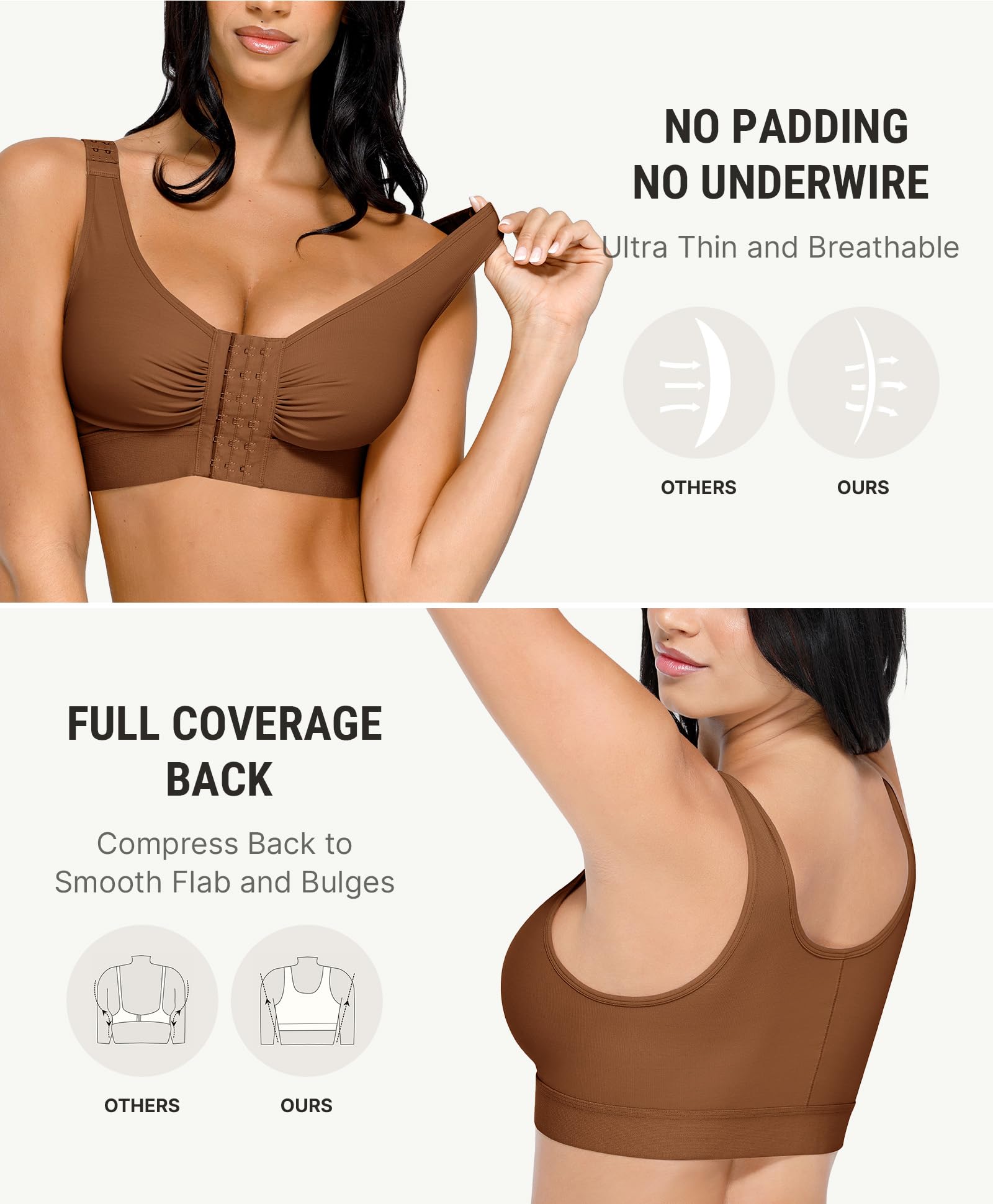 EASY ADJUSTMENT: This women's front closure bra can be adjusted in multiple ways to accommodate various cup sizes, including three rows of hook-and-eye closures in the front and shoulder closures for full adjustability. It is easy to wear, and you can adjust the compression level as needed at any time.