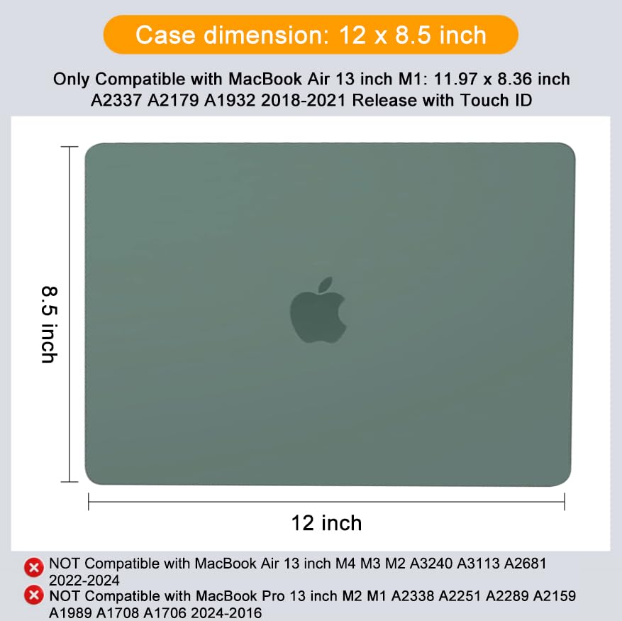 Designed ONLY to be compatible with MacBook Air 13 inch case M1 Chip with Retina Display and Touch ID 2021 2020 2019 2018 Release (Models: A2337 M1 A2179, A1932 - MGN63LL/A, MGND3LL/A, MGN93LL/A, MGN73LL/A, MGNE3LL/A, MGNA3LL/A, MWTJ2LL/A, MVH22LL/A, MWTL2LL/A, MWTK2LL/A, MVH52LL/A, MVH42LL/A, MVFH2LL/A, MVFM2LL/A, MVFK2LL/A, MVFJ2LL/A, MVFN2LL/A, MVFL2LL/A, MRE82LL/A, MREE2LL/A, MREA2LL/A, MRE92LL/A, MREF2LL/A, MREC2LL/A). WARNING: This case is NOT compatible with other model laptops.