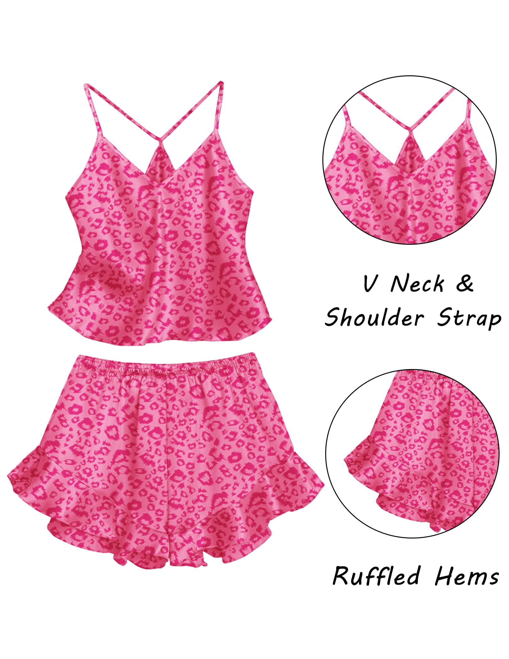 FEATURES: Cute satin pj set for women features a v-neck top,special design shorts of lovely ruffled with comfortable elastic, and there are a variety of printed styles for you to choose from.