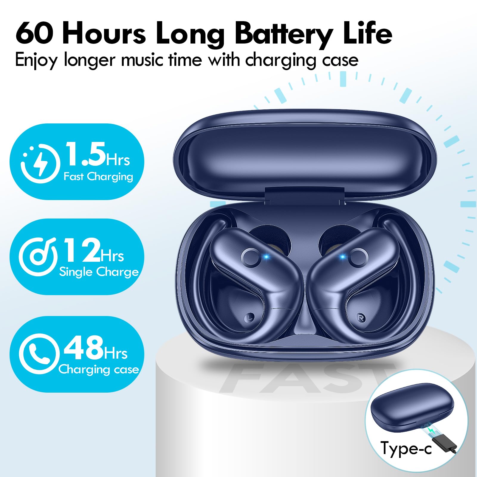 Impressive 60H Total Playtime:Enjoy up to 12 hours of continuous playtime on a single charge, with the included charging case offering an additional 48 hours of battery life. That’s a total of 60 hours of music, calls, and more!