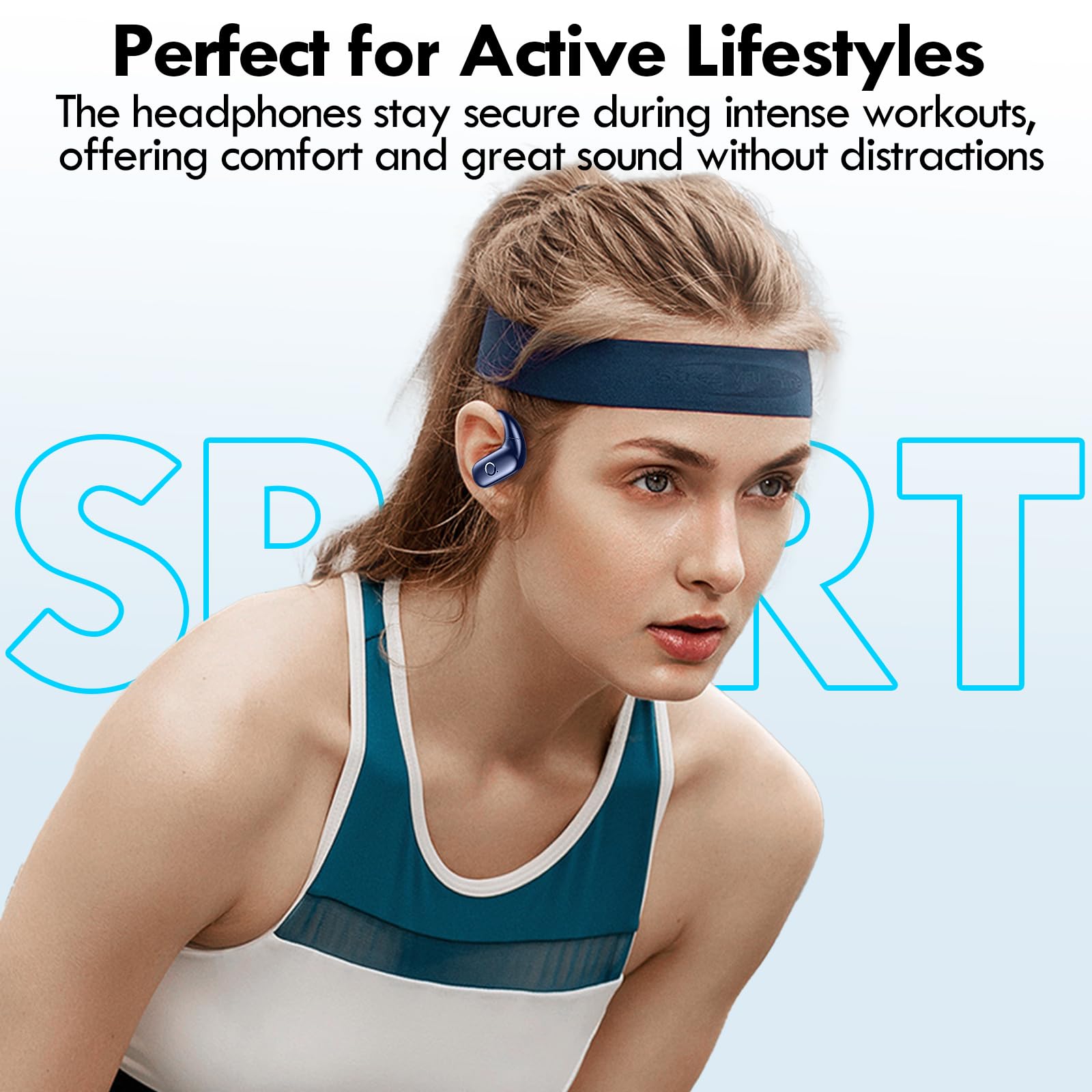 kurdene Wireless Earbuds Bluetooth Headphones Sport,Over Ear Buds with Deep Bass Sound,60Hrs Playtime Earphones Redesigned Comfort Fit with Earhooks for Running,Meeting,Workout-Blue