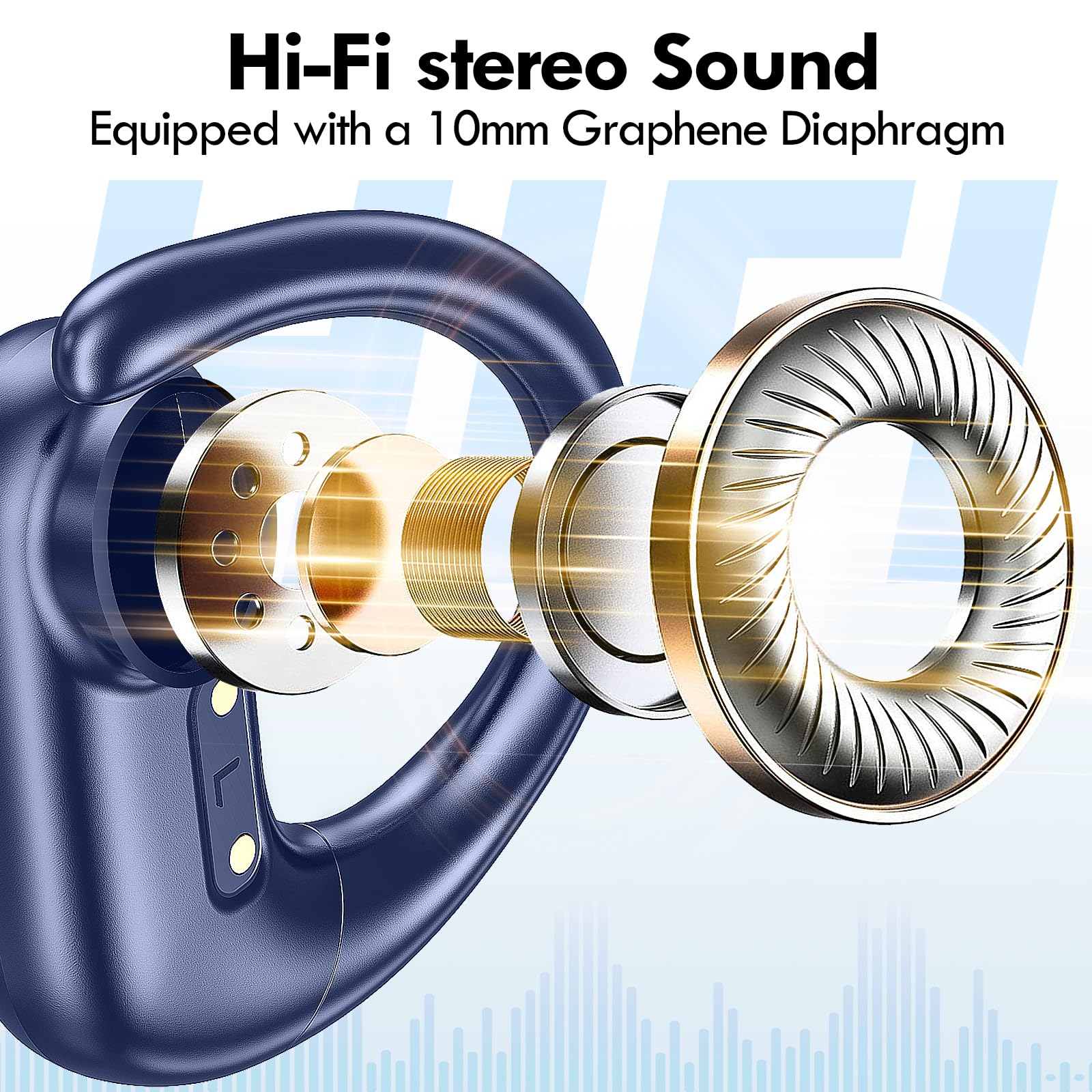 Exceptional Sound Quality:Equipped with 16.1mm vibrating diaphragm drivers, these Bluetooth earbuds deliver powerful bass, crisp mids, and clear treble for a rich, immersive sound experience. The built-in microphones isolate your voice for crystal-clear call quality, ensuring your conversations are always loud and clear, no matter where you are