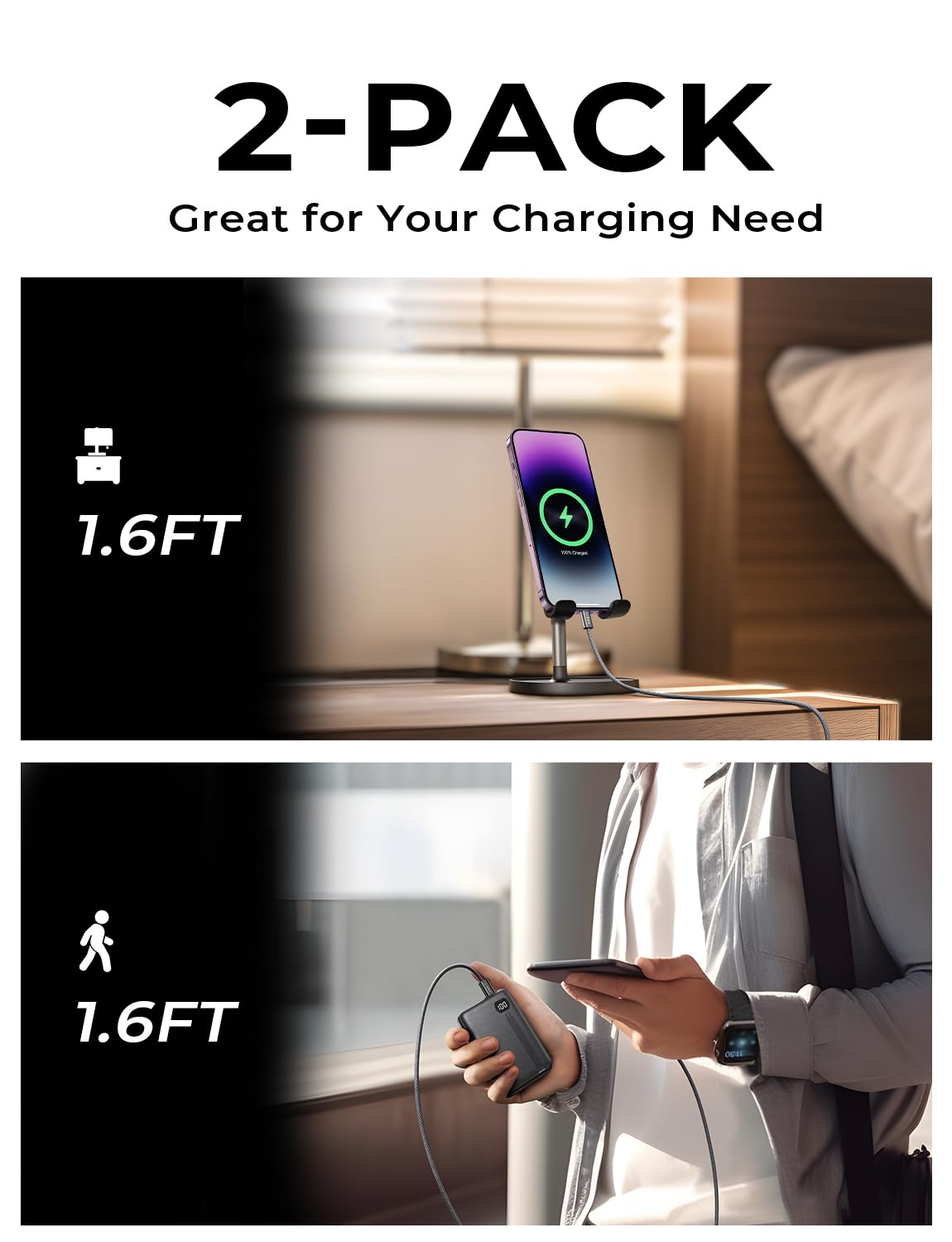 WHAT YOU GET: We provide this USB C to USB C Cable 2 PACK with an 24-Month worry-free period and 24/7 customer service, if you have any questions, we will resolve your issue within 24 hours