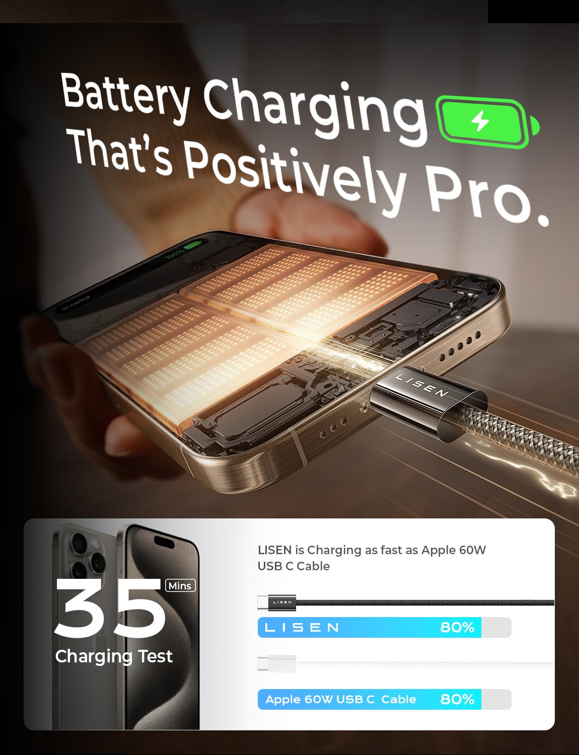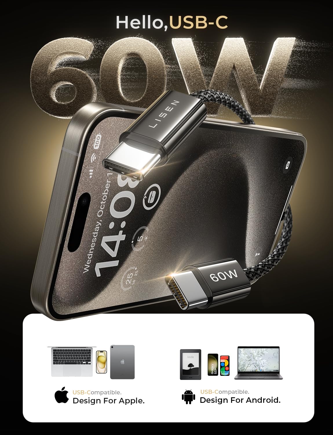60W BLAST FAST CHARGING: This iPhone 15 Charger Cord support PD3.0/QC3.0/QC4.0 fast charging up to 60W Max (20V/3A) with USB-C Power Delivery adapters such as 30W/45W/60W. which 2.2X faster than 3.1A version and charges USB C Phone from 0% to 88% within 35 minutes, iPad Air 64% within 35 minutes, Macbook Air 50% within 35 minutes, and data transfer speeds up to 480Mbps (1200 songs synced per minute) compatible with Samsung,Tablt,iPad Air Mini Pro,Macbook and More etc