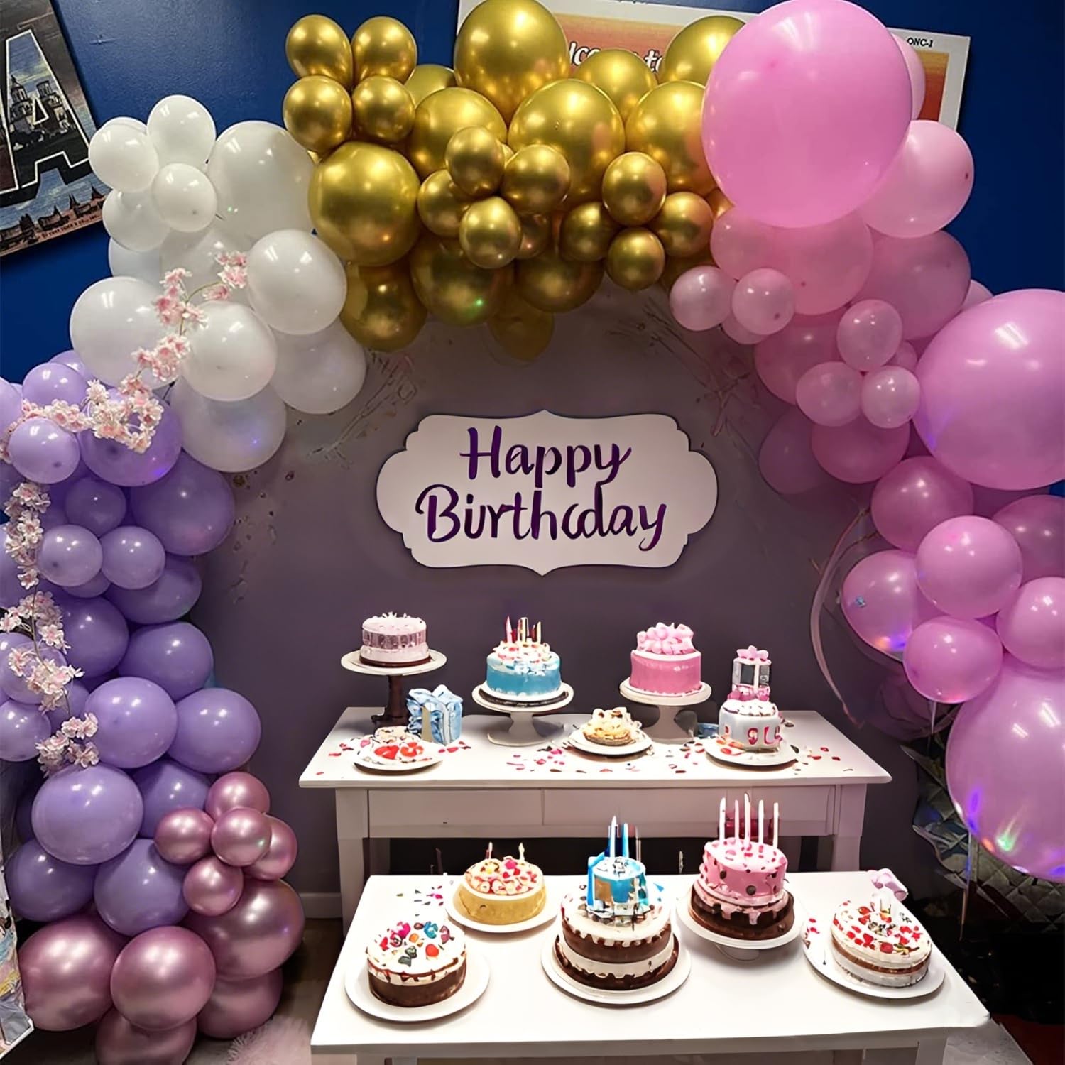 VERSATILE: Create stunning balloon garlands, arches, and more with Isndare purple pink white gold balloons, take your party decorations to the next level, which can be used in a variety of ways to create stunning party décor, create your desired look, great for princess theme party, baby shower, girls birthday party decorations, wedding, etc., decorate any party indoor or outdoor