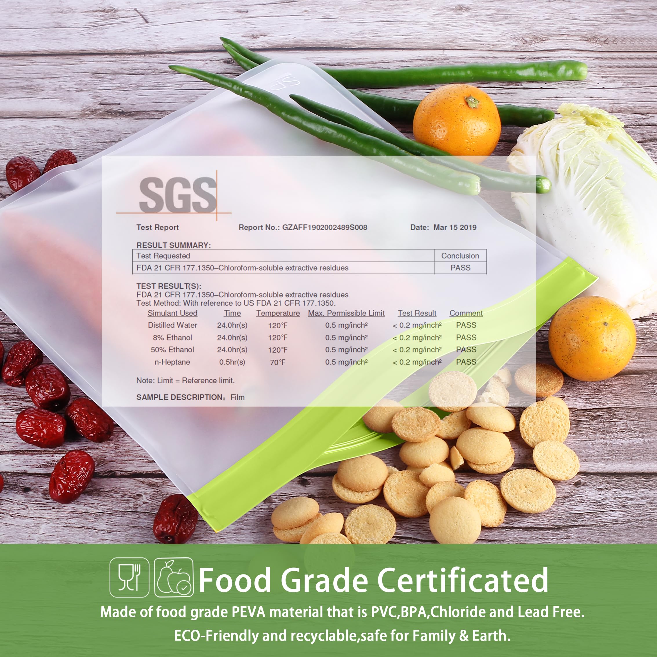 【FOOD GRADE MATERIAL】 Choose SPLF brand for TRULY food-grade reusable storage bags. Made of food-grade PEVA material that is PVC, BPA, Chloride and Lead free. Healthy and safe for family and earth.