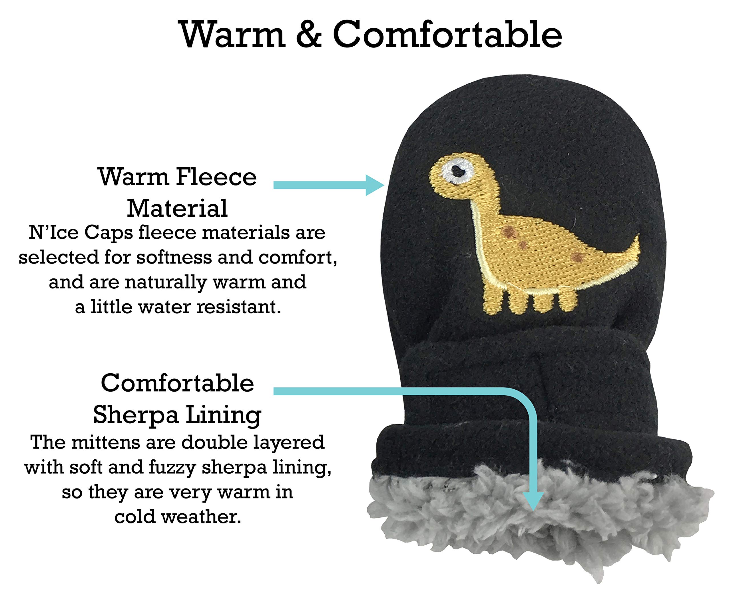 WARM AND COMFORTABLE SHERPA LINING: N'Ice Caps kids fleece materials are selected for softness and comfort and are naturally warm and a little water resistant. The mittens are double layered with soft sherpa lining, so they are very warm in cold weather