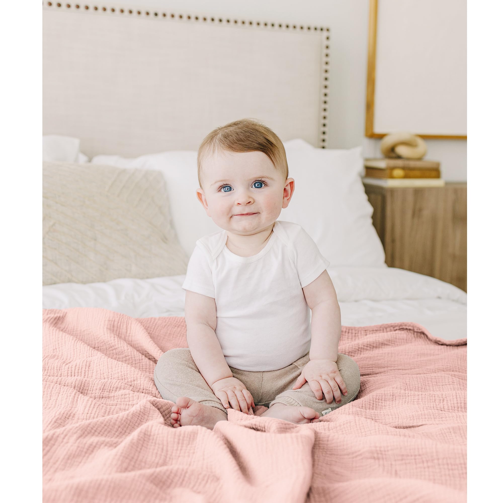 Versatile Use: This blanket is generously sized at 40x36 inches to provide ample coverage to keep your toddler cozy and content. Whether it's for naptime, cuddling time, or simply snuggling up on the couch, our muslin toddler blanket is perfect for any occasion.