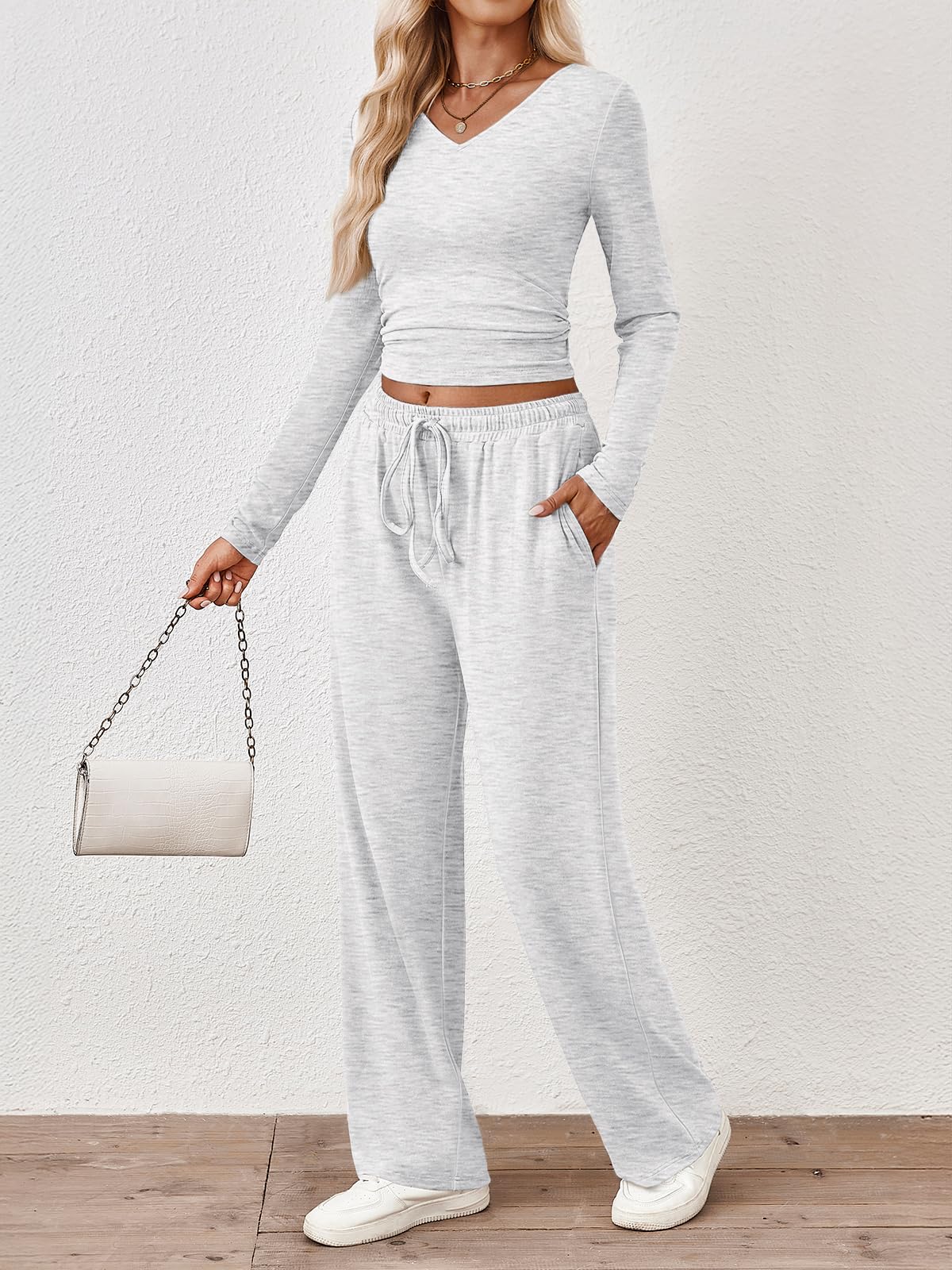 Design: As womens fall fashion 2025, it consists of long sleeve shirts and wide leg pants, with a high-waisted elastic band and adjustable drawstring. These lounge sets for women offer a customizable fit that flatters body types, enhancing both comfort and style