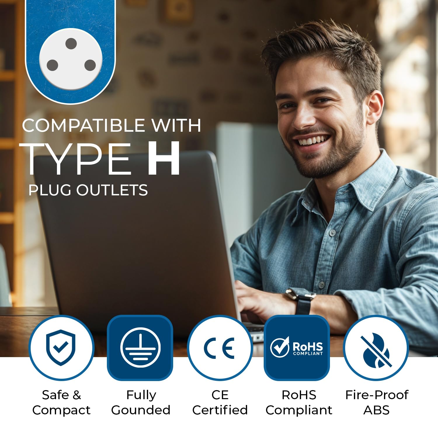 Outlet adapter Type H Plug - works in countries such as Israel, Palestine