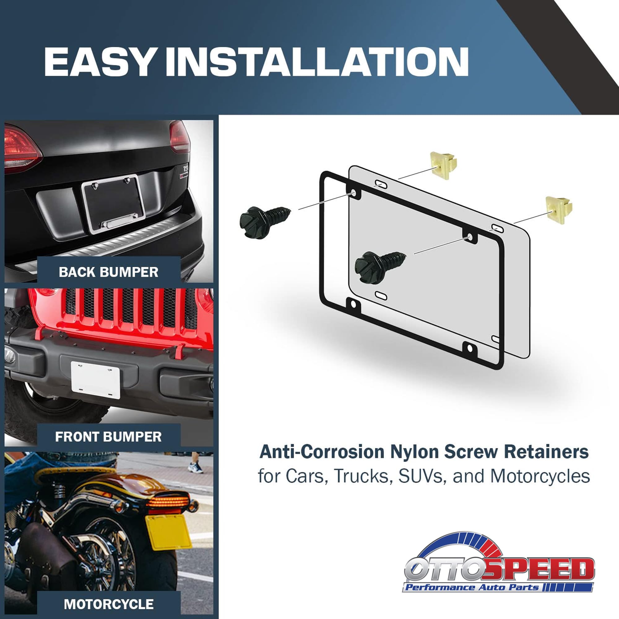 Hassle-Free: We are a USA based company dedicated to making hardware for your vehicle that lasts. If for any reason these are not the right license plate screw retainers for you, we will make it right.