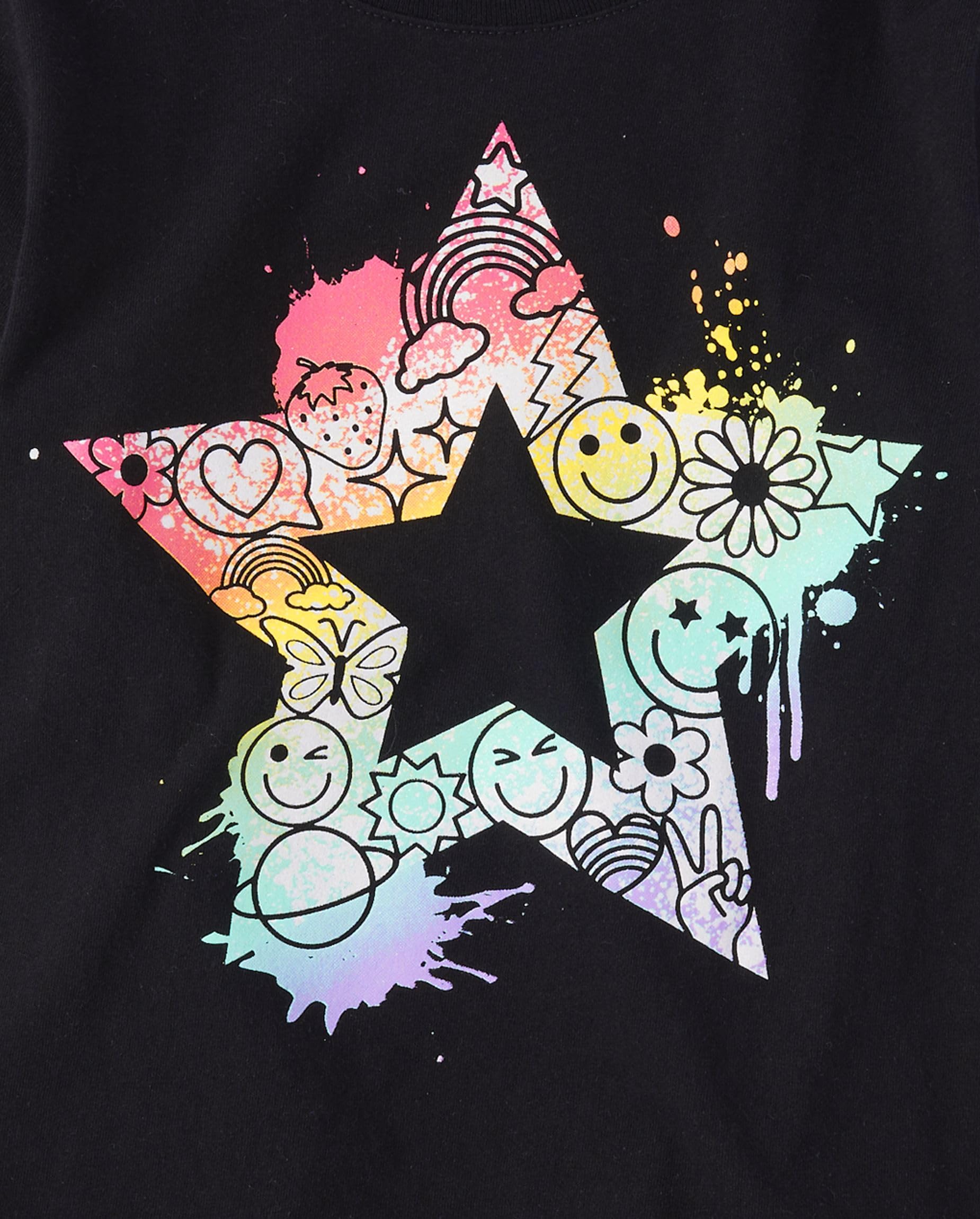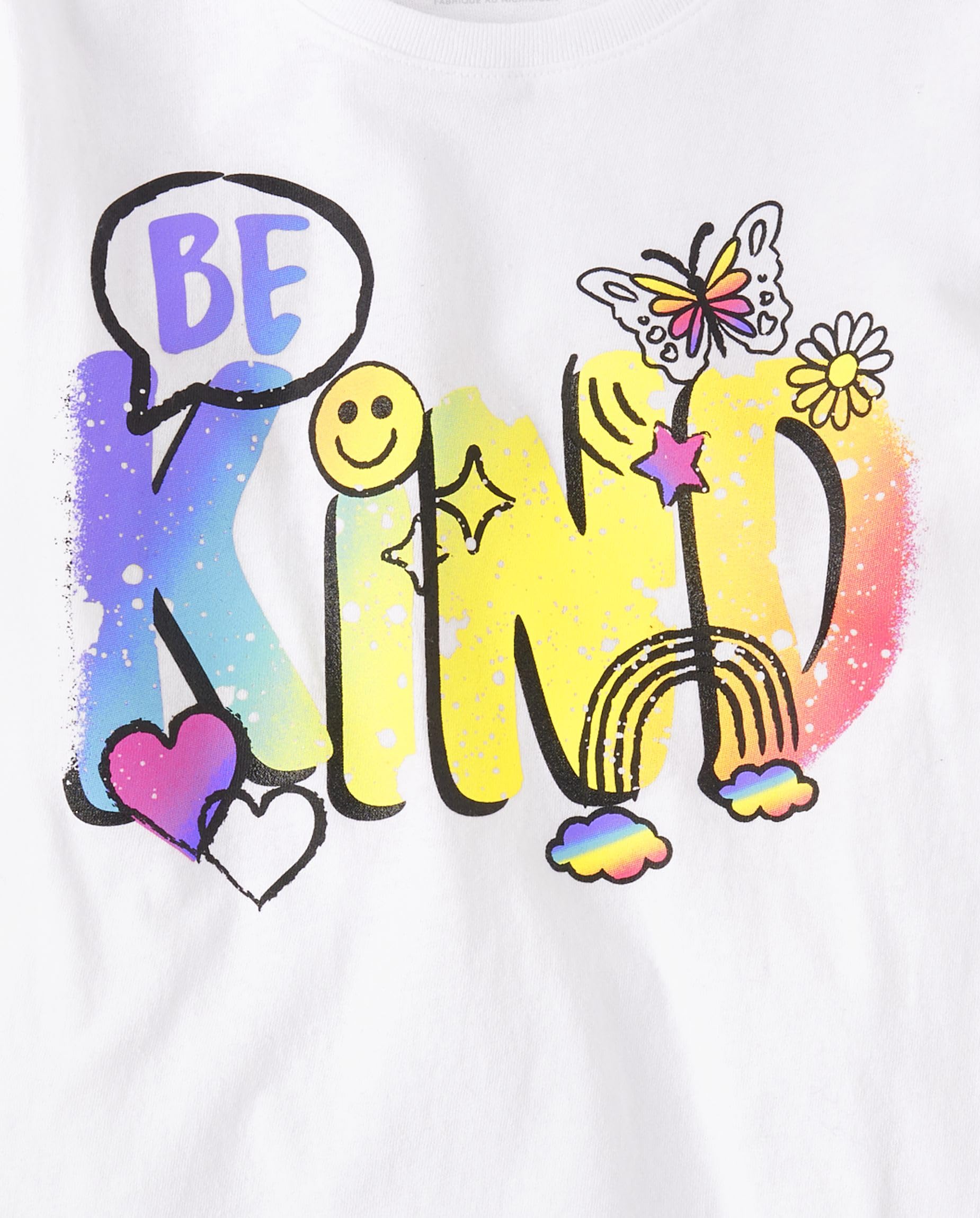 MULTIPACK β 4-pack of graphic tees: 1 style with happy face and rainbow graphic design at front; 1 style with star graphic design at front; 1 style with 'Kind' graphic design at front; 1 style with daisy graphic design at front