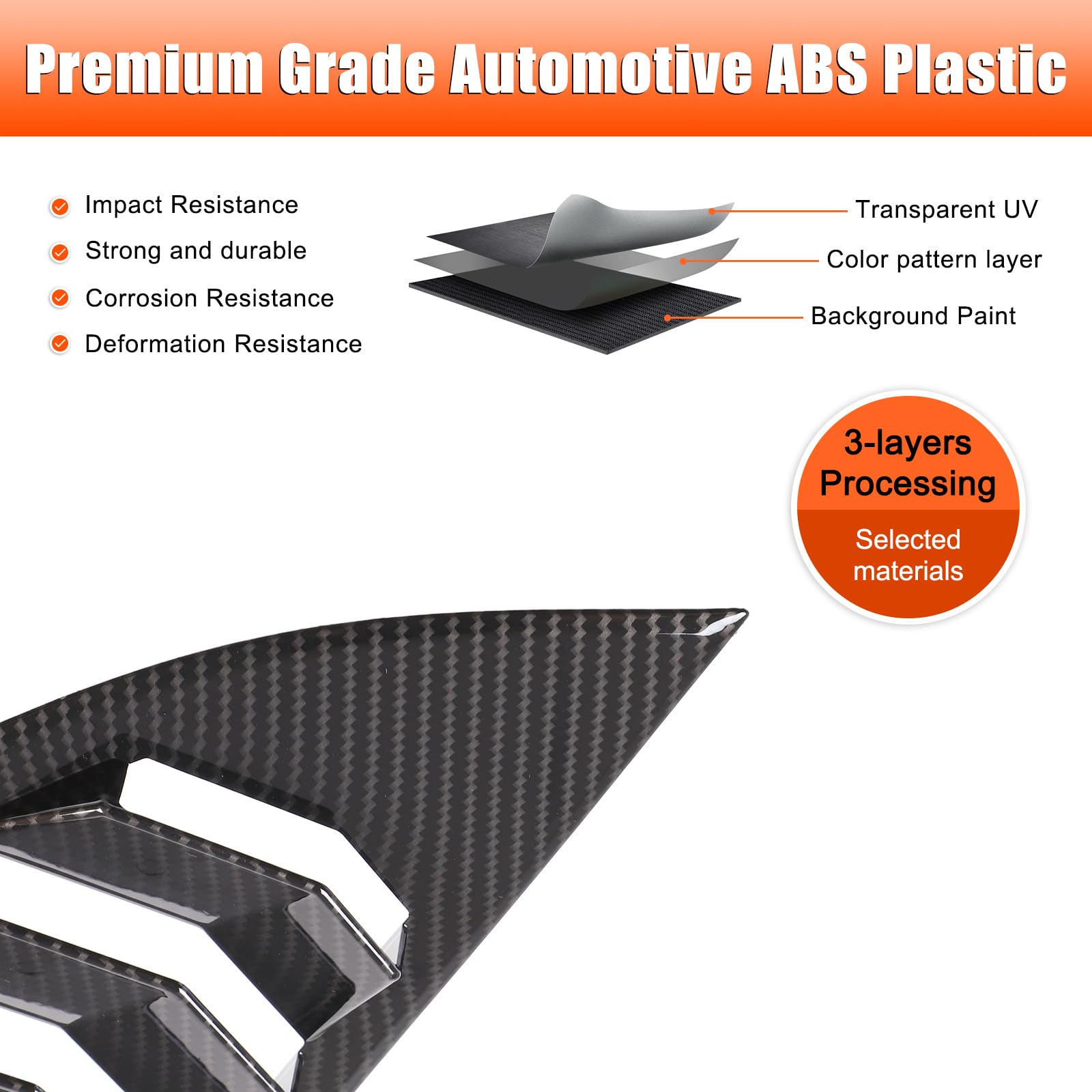 BEST EXPERIENCE — Package includes 2Pcs Rear Side Window Louvers Air Vent Scoop Shades Cover. We are committed to providing our customers with premium-quality automotive accessories to meet all your needs. If you have any questions please do no hesitate to contact us, we are always here to hear you and solve problem for you.