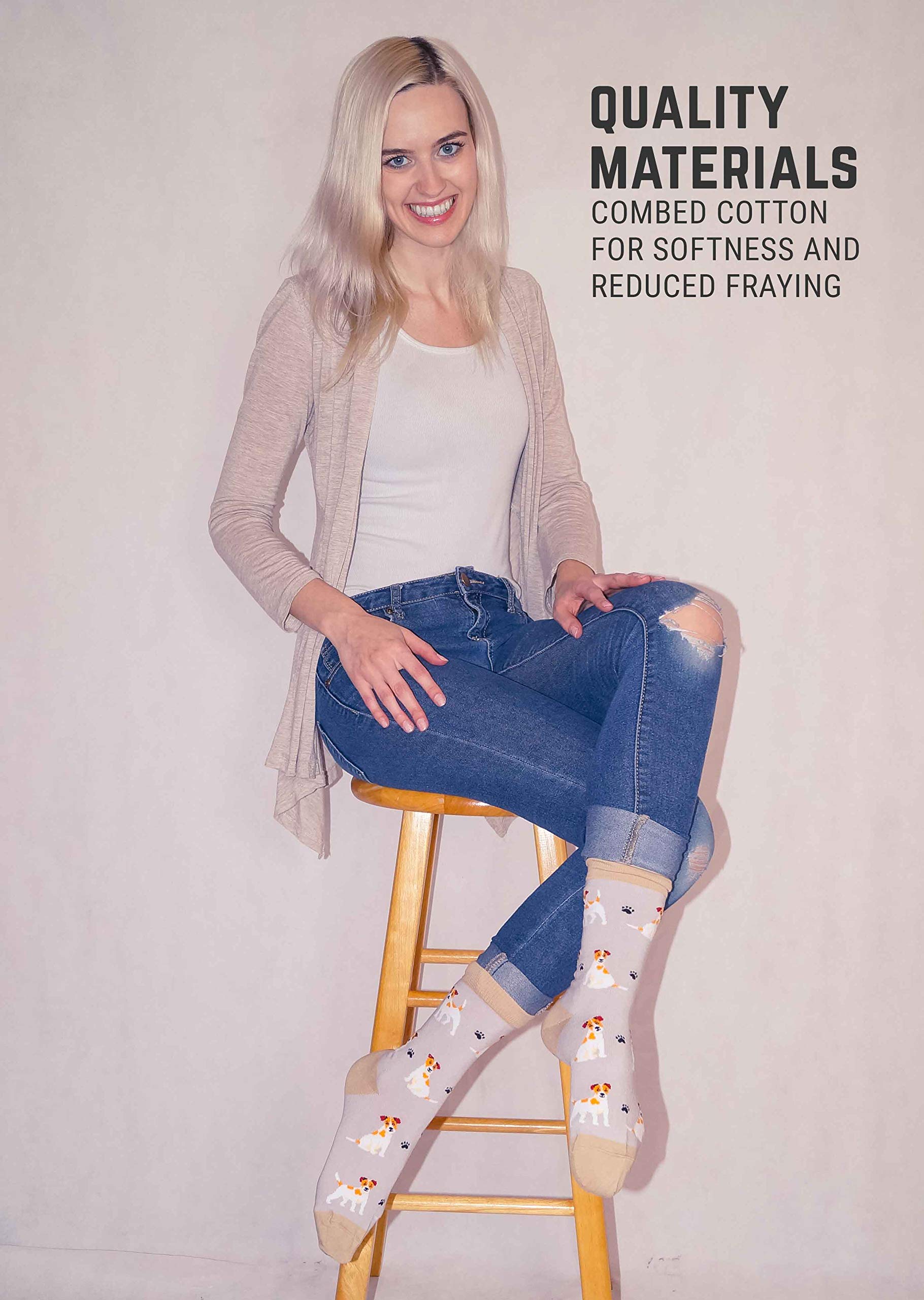 β A pair of Jack Russell Terrier socks for women. Bring awareness to these hard working, energetic and friendly dogs with these Jack Russell Terrier socks.