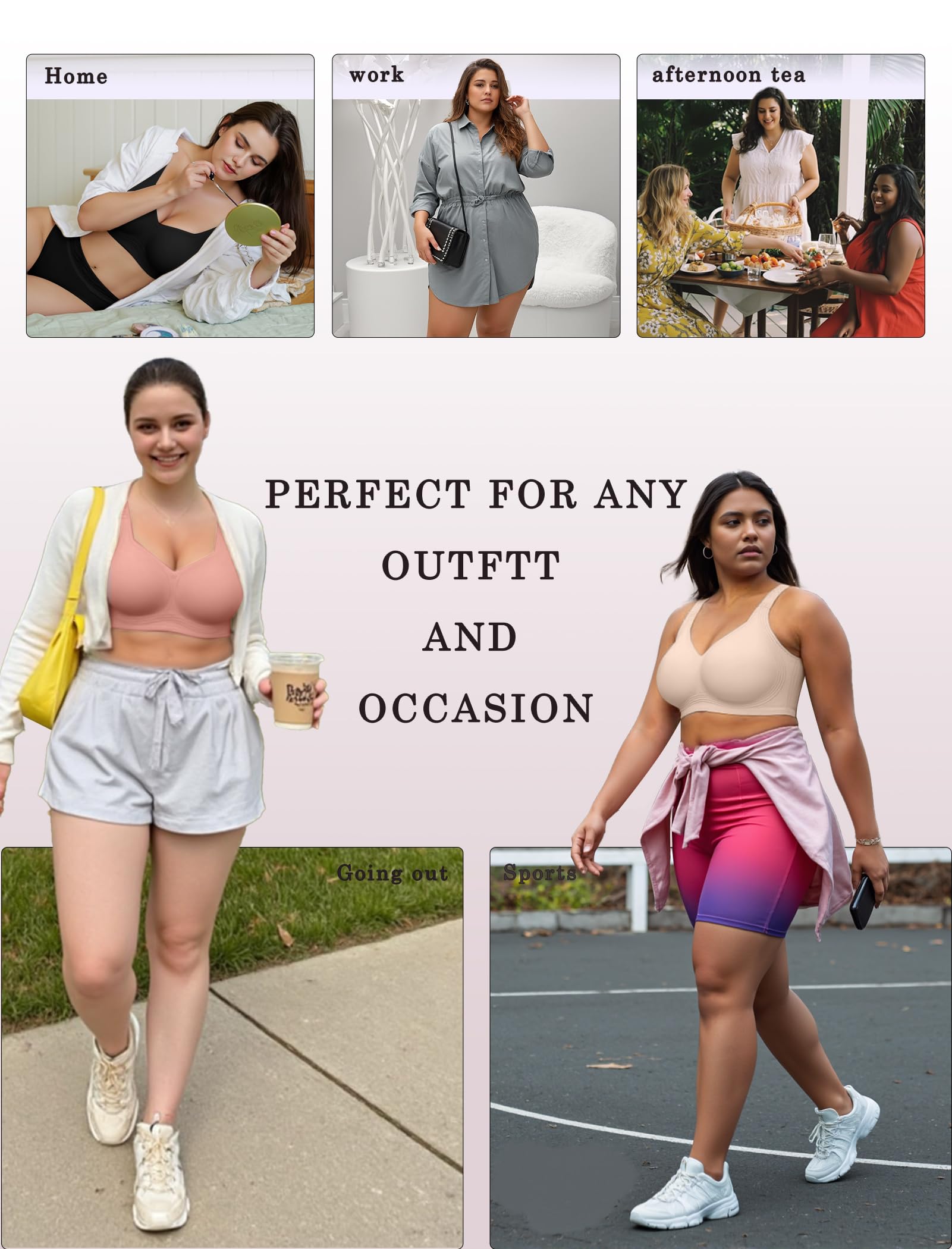 Widen Adjustable Straps - The bras reduce pressure on the shoulders, especially suitable for large chest. The wide shoulder straps prevent slipping or shifting, keeping the bra in place. Durable Straps offers all-day support and comfort. With special versatile strap design, you can easily switch between two stylish looks: sexy crisscross (X-back) or sleek U-back—no need for multiple bras!