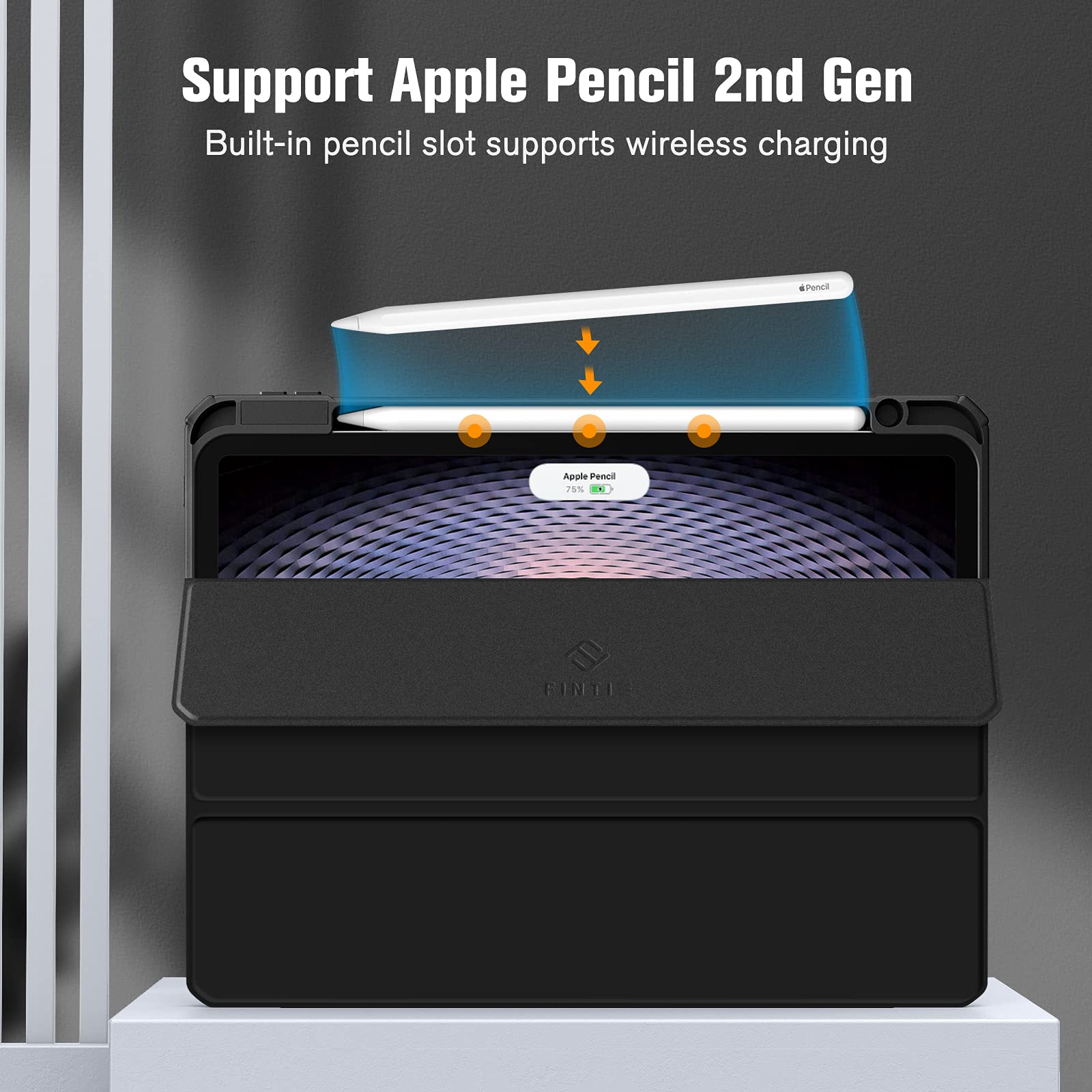 Built-in Pencil holder, grab your pencil 2nd gen effortlessly whenever you want, easily to carry your iPad pencil with your device. (Case only, other accessories not included!).