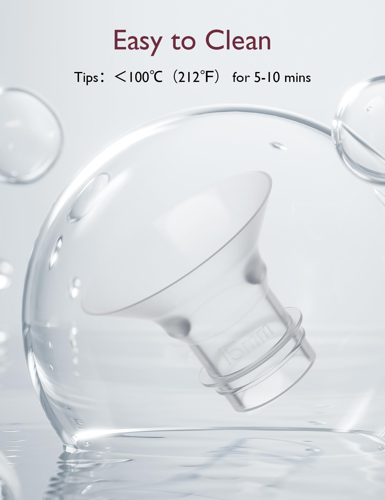Easy cleaning, wash Momcozy breast pump parts after each use with warm soapy water and rinse well. Please use boiling water/steam, with a temperature of around 100°C (212°F).