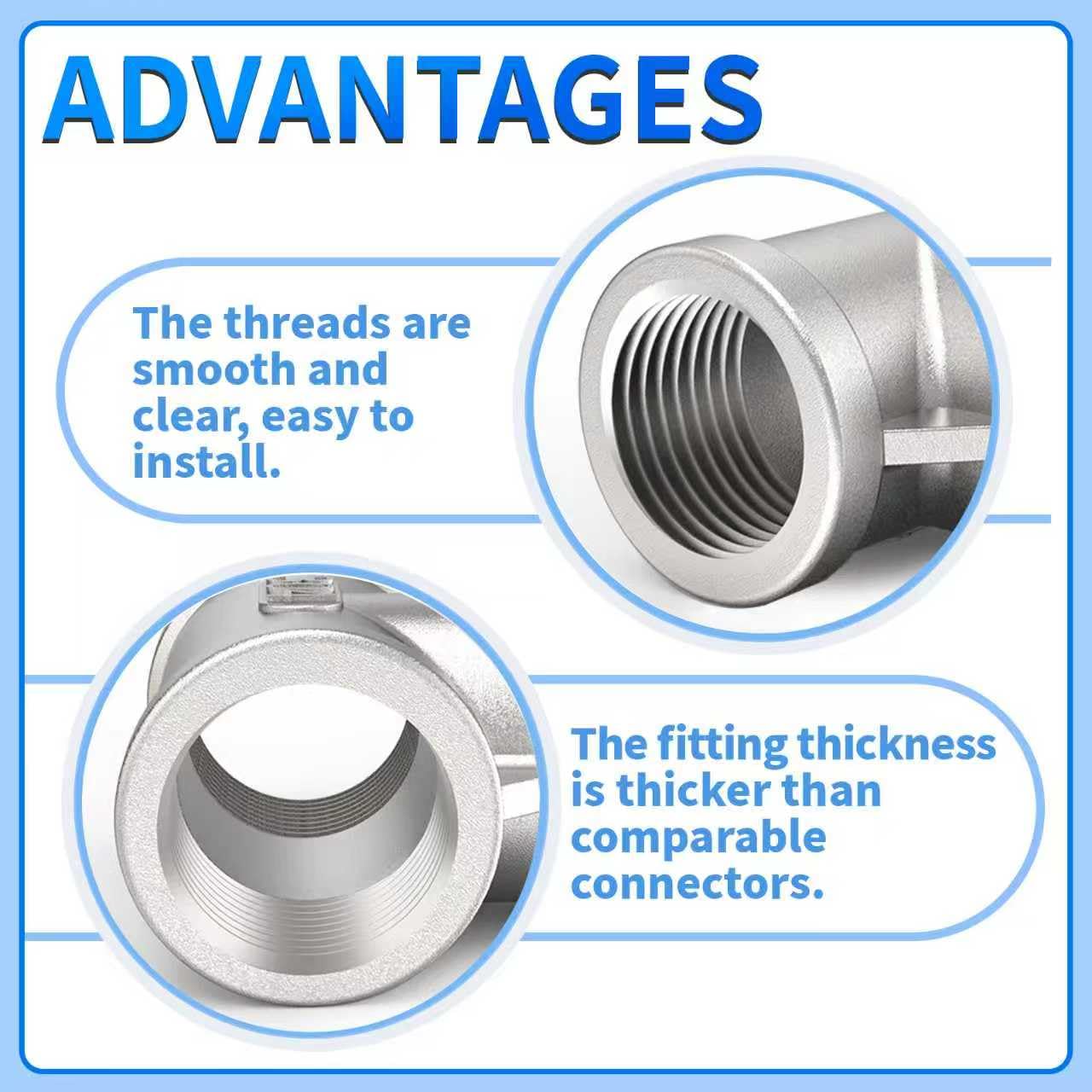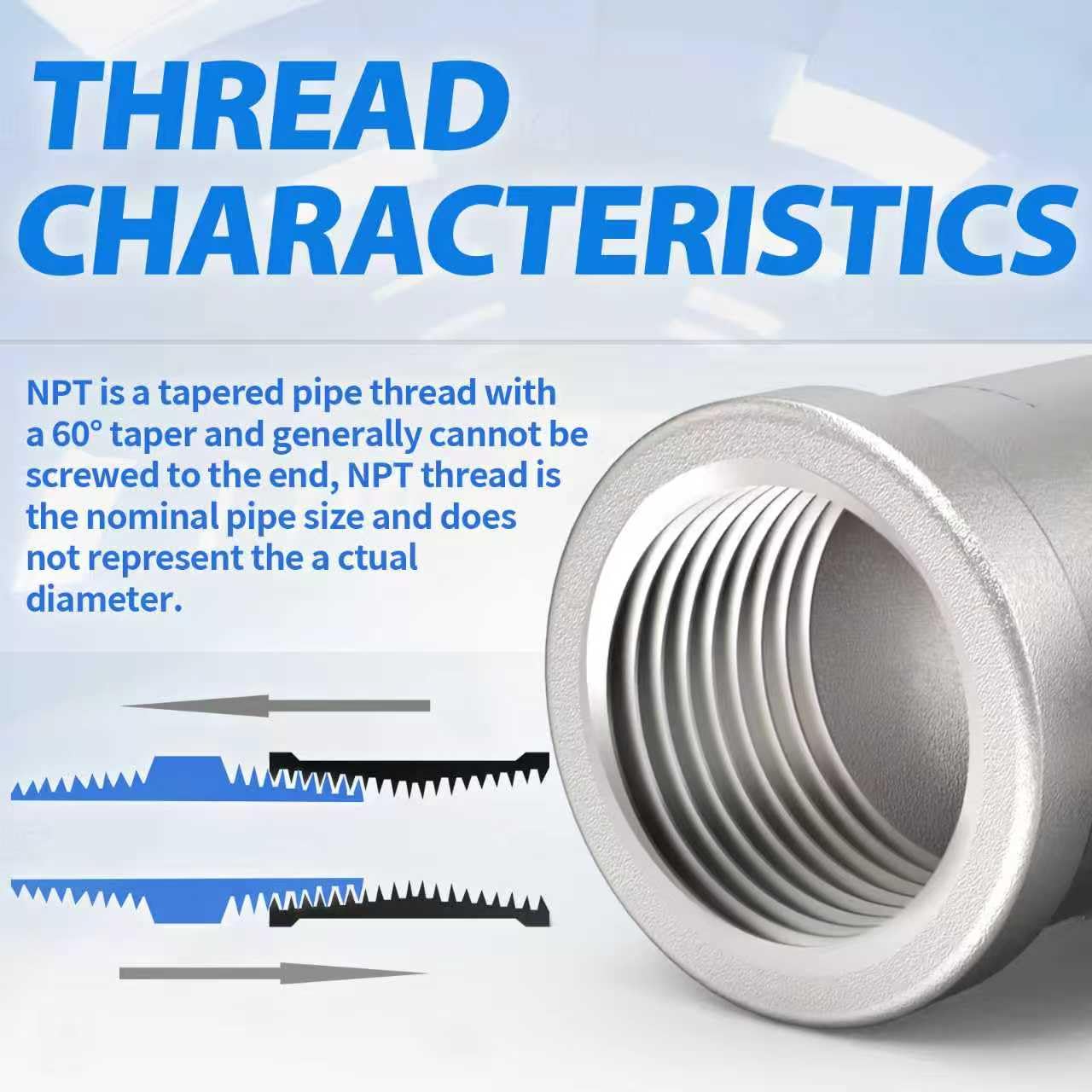 NOTICE - NPT is a tapered pipe thread with a 60° taper and generally cannot be screwed to the end, these 304 stainless steel fittings are lead-free.
