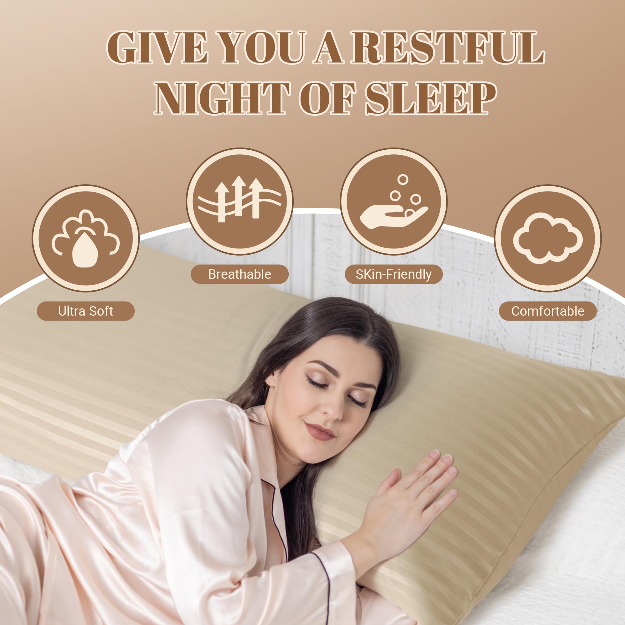 Breathable and Skin-friendly: Cosybay 20x54 beige body pillowcase is made of newly upgraded high-quality polyester fabric, with a unique stripe design that makes the pillow more fashionable and luxurious. It is soft, skin-friendly, and noiseless, allowing you to stay cool and comfortable throughout the night.