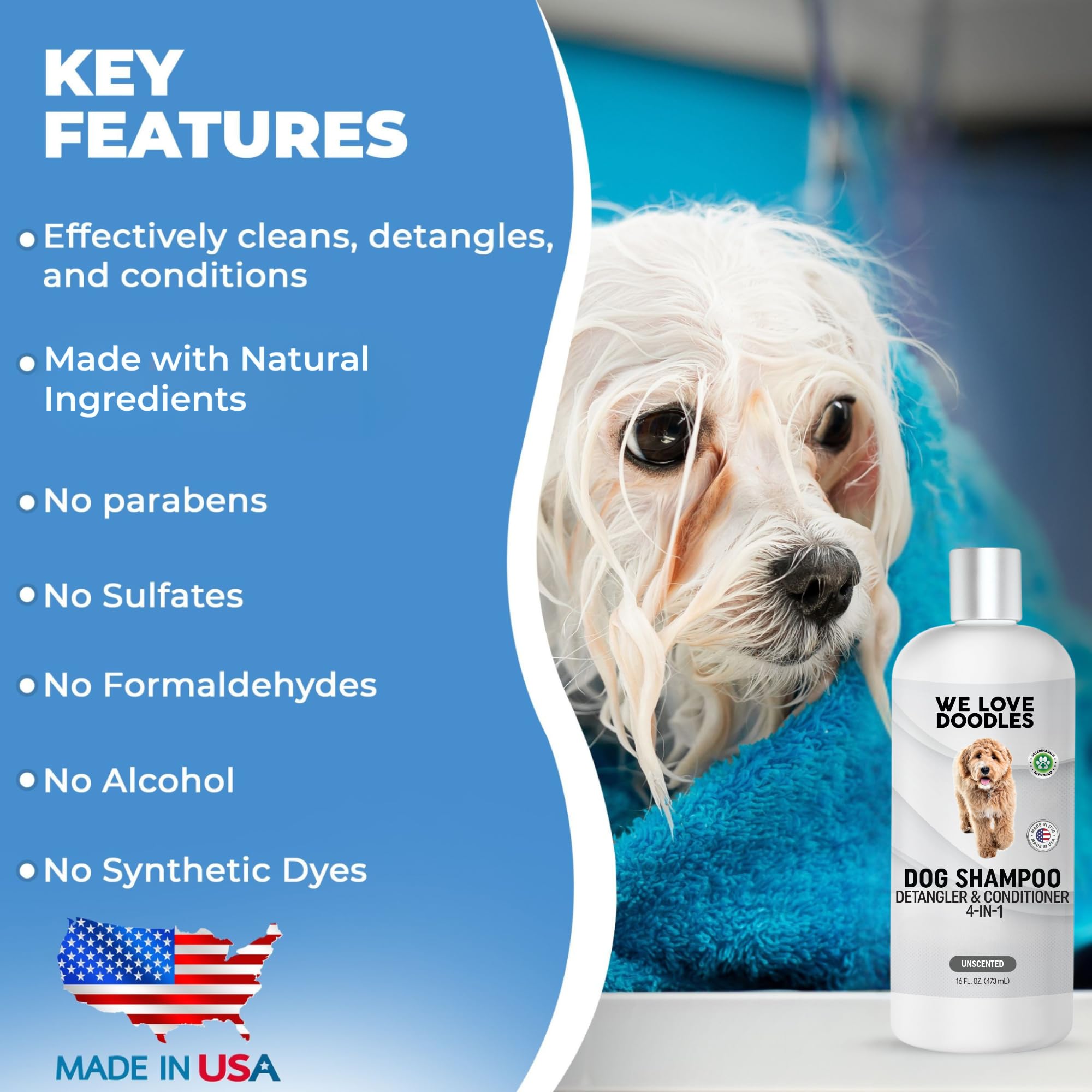 PROUDLY MADE IN THE USA – Crafted with high-quality, gentle ingredients, this shampoo delivers dependable grooming performance and ensures your dog’s coat looks healthier and feels softer after every bath.
