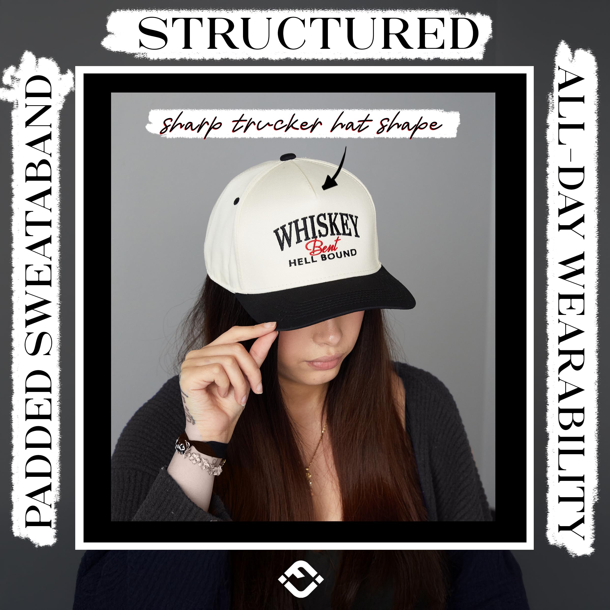 GREAT QUALITY: These two-tone retro baseball caps are 35% cotton and 65% polyester, ensuring a soft, comfortable fit, while also providing durability and breathability. This 5 panel structured hat boast high-quality, detailed embroidery designs, adding a touch of elegance and sophistication to any occasion. Despite their structured design, these hats offer a lightweight feel that contributes to their comfort and suitability for extended wear. Hand wash only.