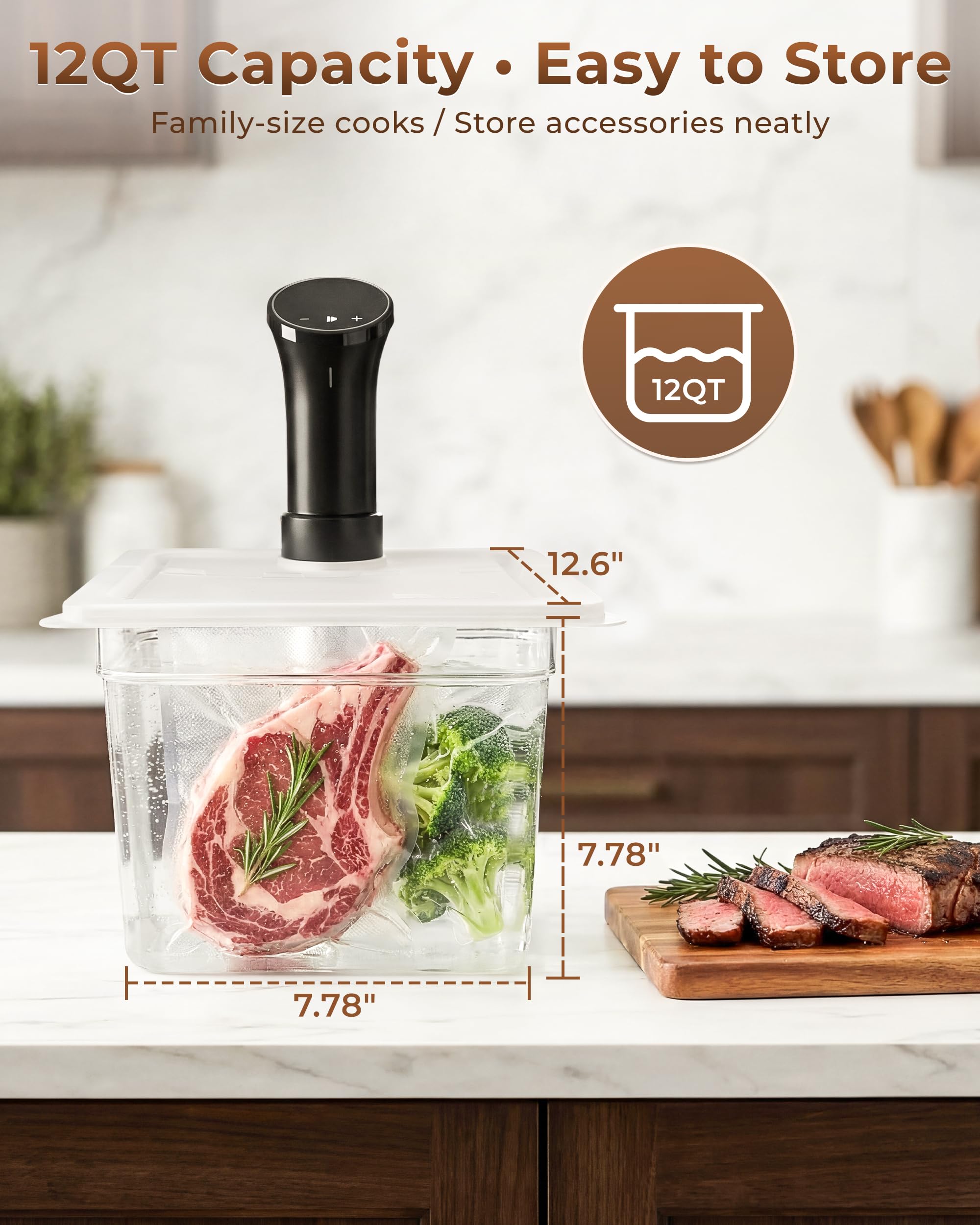 Everie Sous Vide Container Bundle for Anova Nano - 12 Quart container EVC-12 and collapsible hinge lid. Compatible with Nano 750w and Mini 850w and AN500-US00 1000w and Anova Pro 3.0 AN525-US00 1100w only. It also matches Instant Pot sou vide cooker though the hole is slightly bigger.