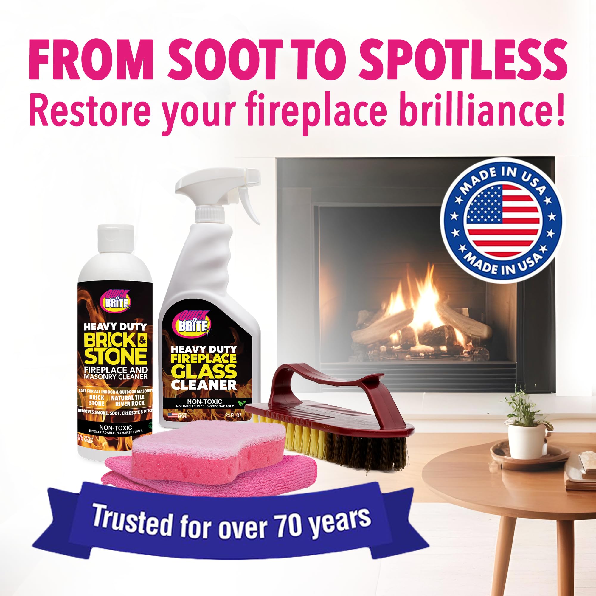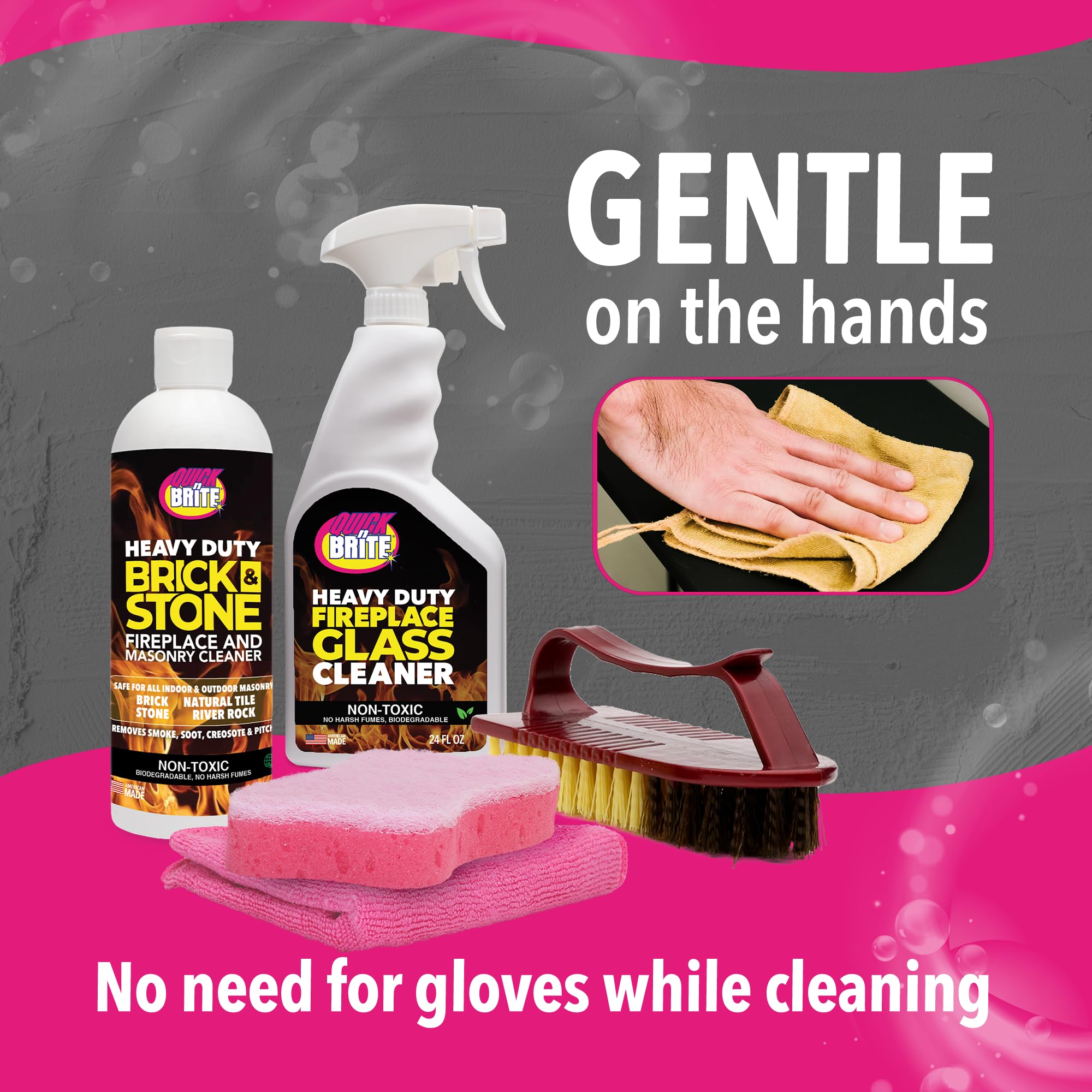 Completely transform your fireplace - The kit has a 24 oz fireplace glass cleaner spray, 16 oz gel hearth cleaner, scrub brush, sponge, and a microfiber towel for a thorough clean, rendering your fireplace as good as new. Safe for all glass surfaces.