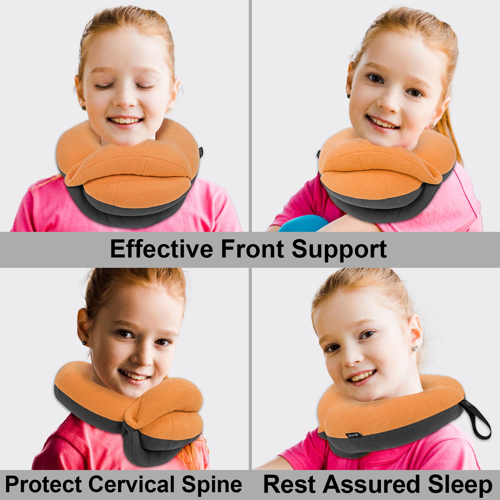 ✦ Enhanced Neck Support & Adjustable Size ✦ The patented ergonomic travel pillow features a unique triple support system to prevent your head from falling forward. Its Q-shaped design provides 360-degree support for your head, neck, and chin. You can easily adjust it for a child's comfort, keeping their head in an upright position that relaxes a kid's neck muscles. Additionally, you can rotate the pillow 90 degrees for enhanced side comfort. Adult Size: Fits neck sizes 13 " and above (generally suitable for individuals over 90 lbs). Small Size: Fits neck sizes up to 13 " (generally suitable for individuals between 40-90 lbs).