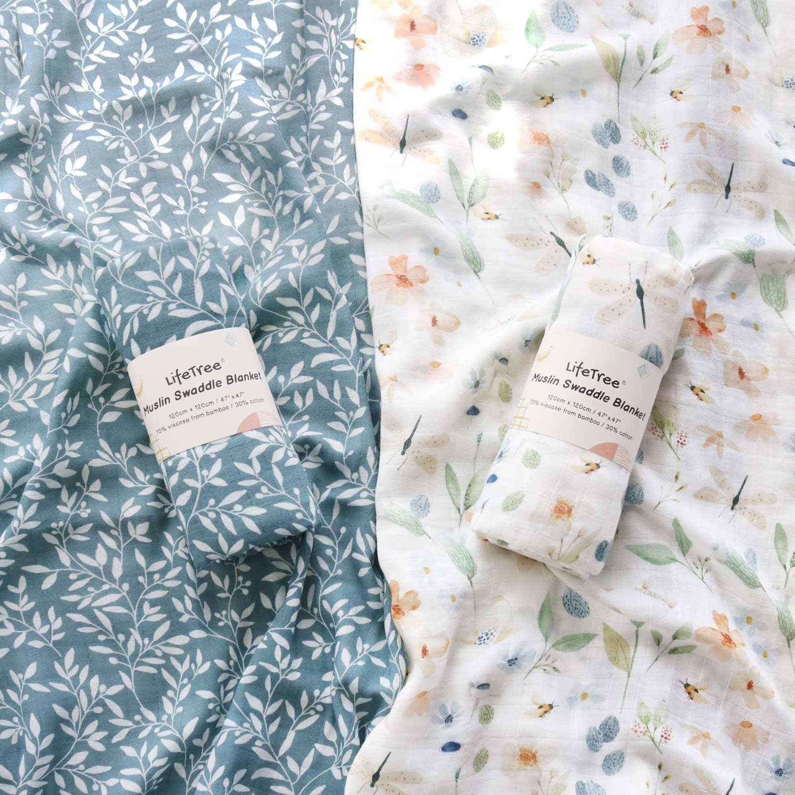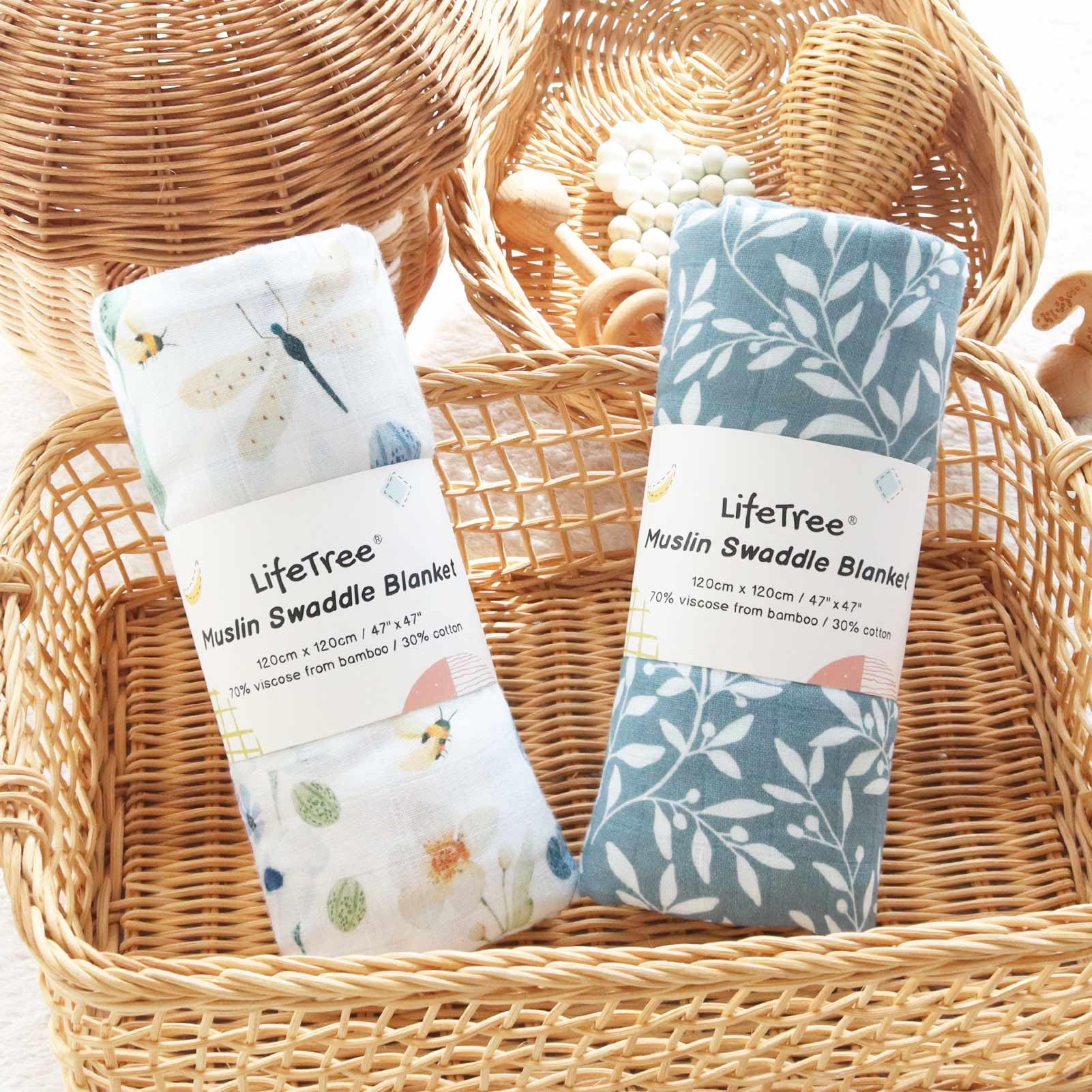 Babies will sleep more better - Swaddle blankets give a snug and cozy feeling, helping your baby feel more secure and sleep more better. LifeTree muslin swaddle blankets are made from high quality viscose from bamboo and cotton. It is very soft , breathable and cozy fabric that is gentle on baby's delicate skin.