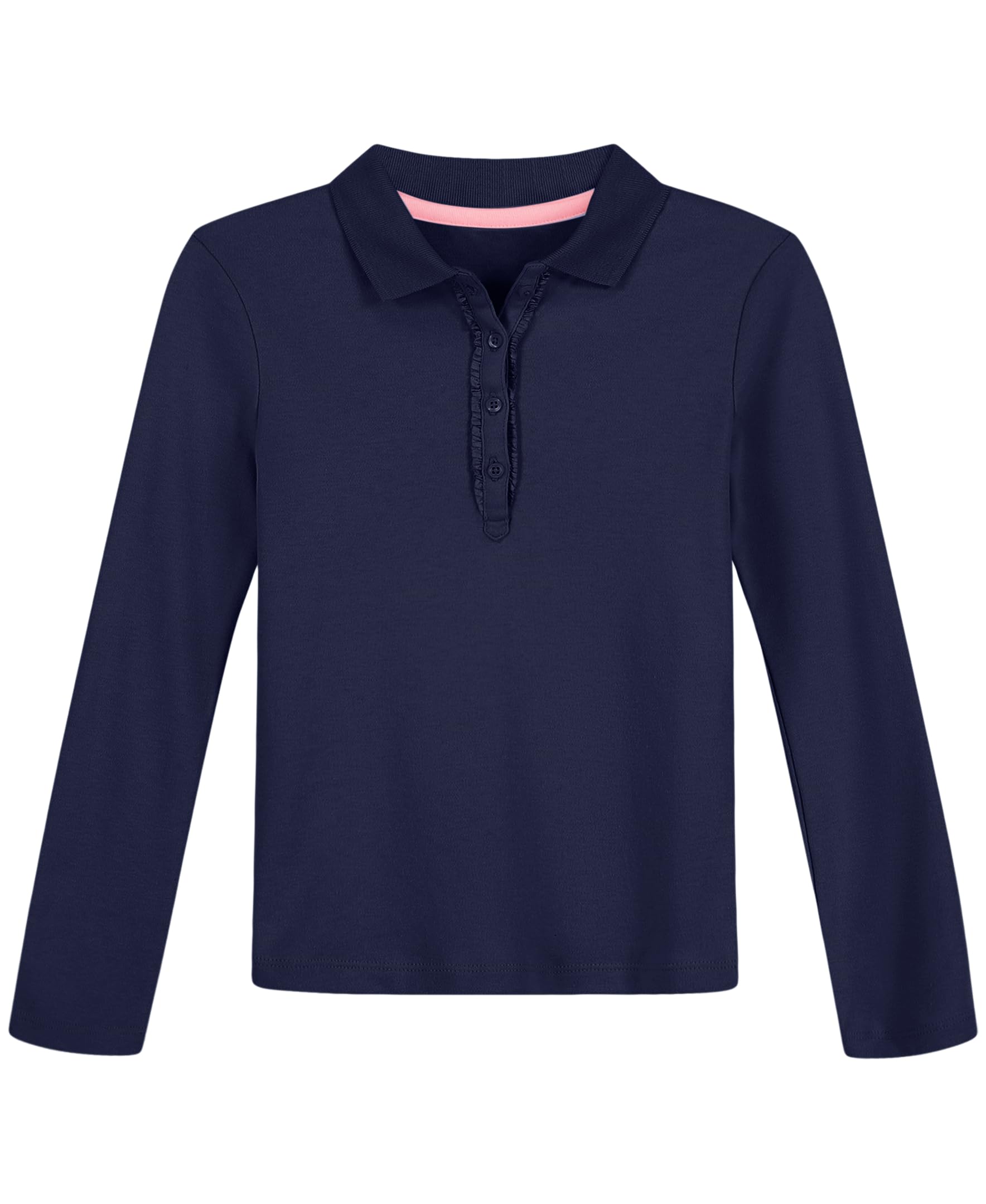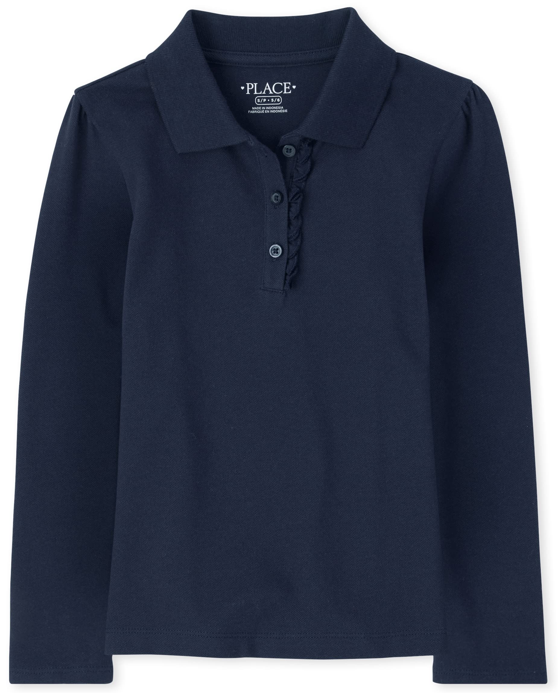 Styled with long sleeves, shirring at the shoulder, ruffle button placket and tagless label
