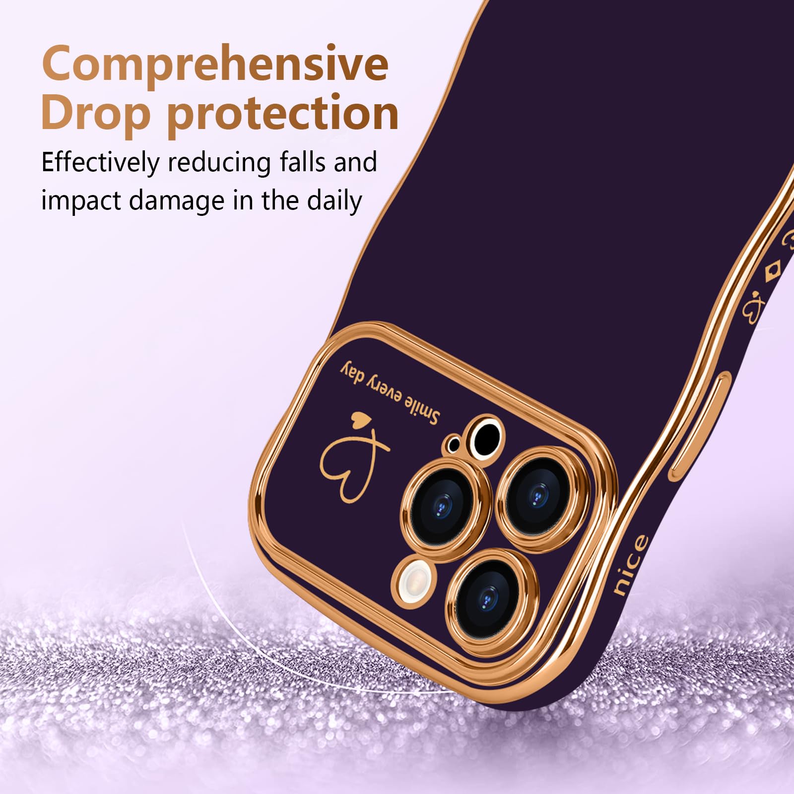 【Chic Love Heart Case】- The very modish cute Love Heart pattern on the camera lens frame, matched with the shiny gold electroplating lines and edges, perfectly decorates your case for iPhone 14 Pro Max. The exquisite heart pattern on the side make your phone more distinctive.
