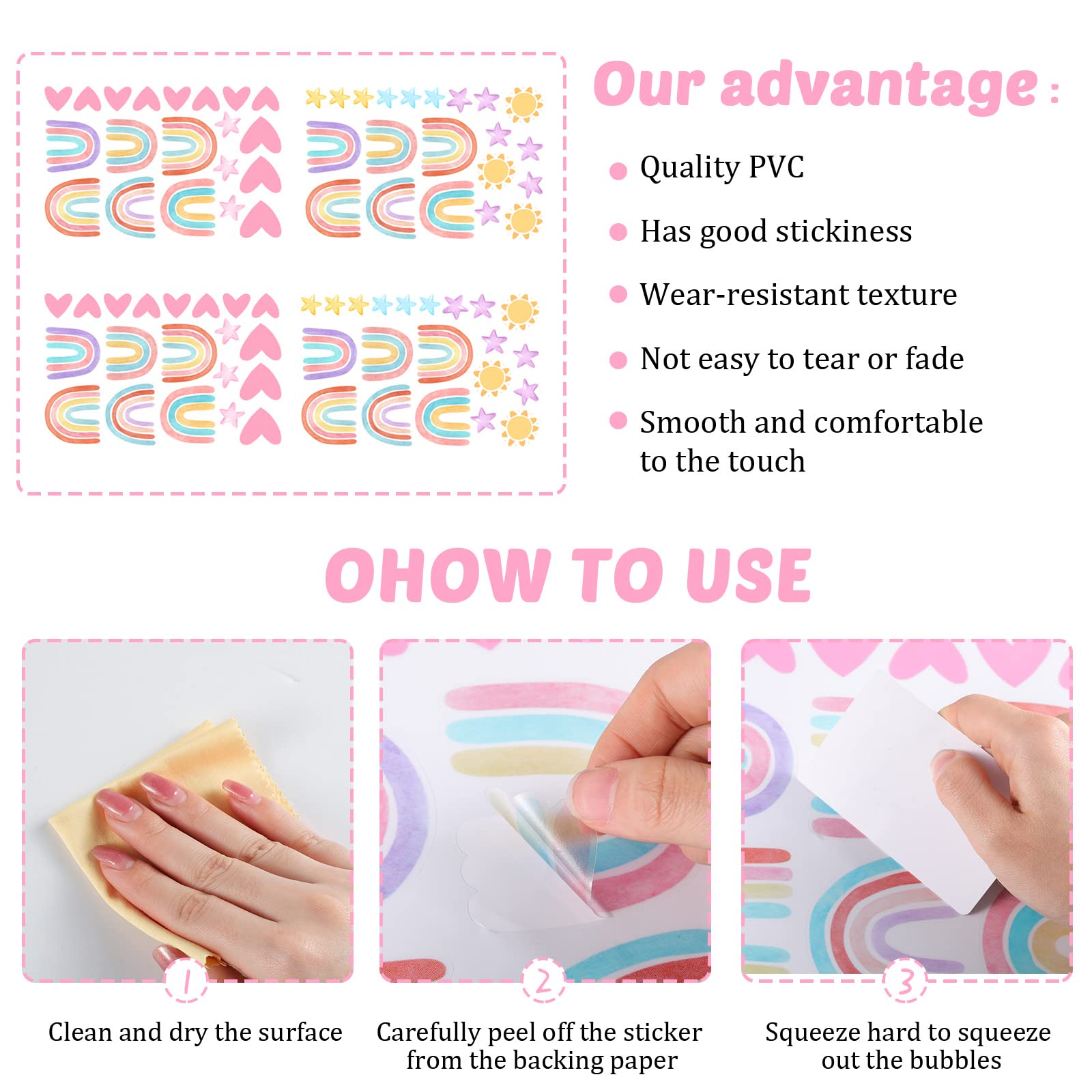 Easy to Stick and Peel: the rainbow wall sticker for girl bedroom is made of quality vinyl material, safe and waterproof, which can be easily torn with a blow dryer without leaving residue, giving a joyful use feeling