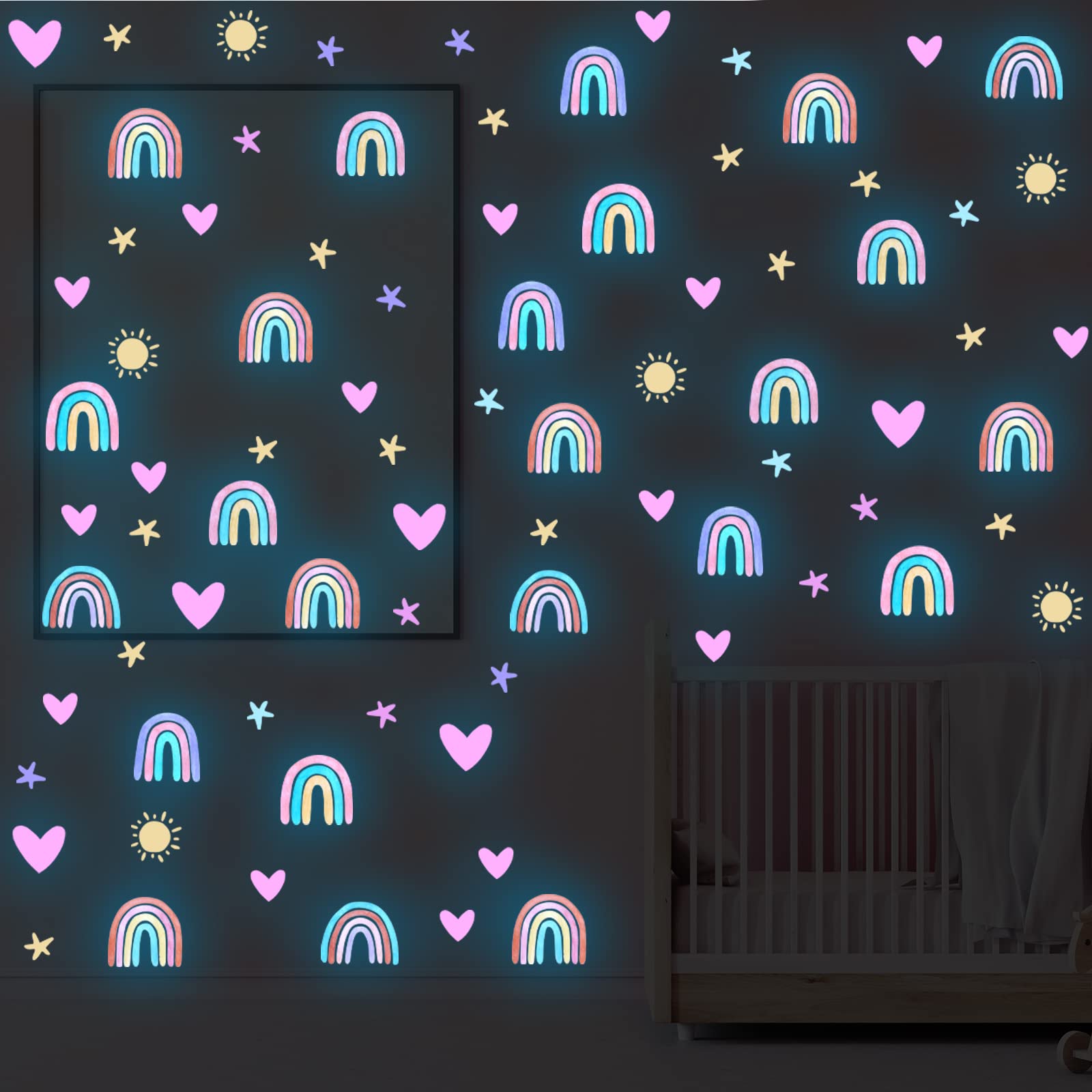 Charming Combination: receive 4 sheets wall decors, including 24 pieces of rainbow wall decor, 30 pieces of star stickers, 22 pieces of heart stickers and 6 pieces of sun stickers, a total of 82 pieces, rich styles and plenty quantity to make your room even more enchanting