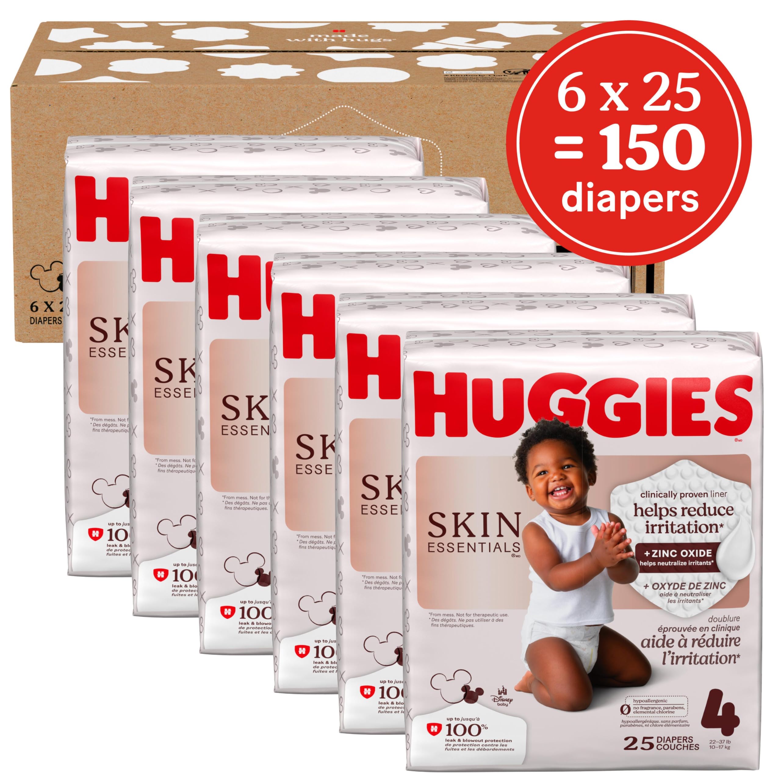 Huggies Size 4 Diapers: 150 Huggies Skin Essentials Baby Diapers (6 Packs of 25), Size 4 (22-37 lbs); packaging may vary
