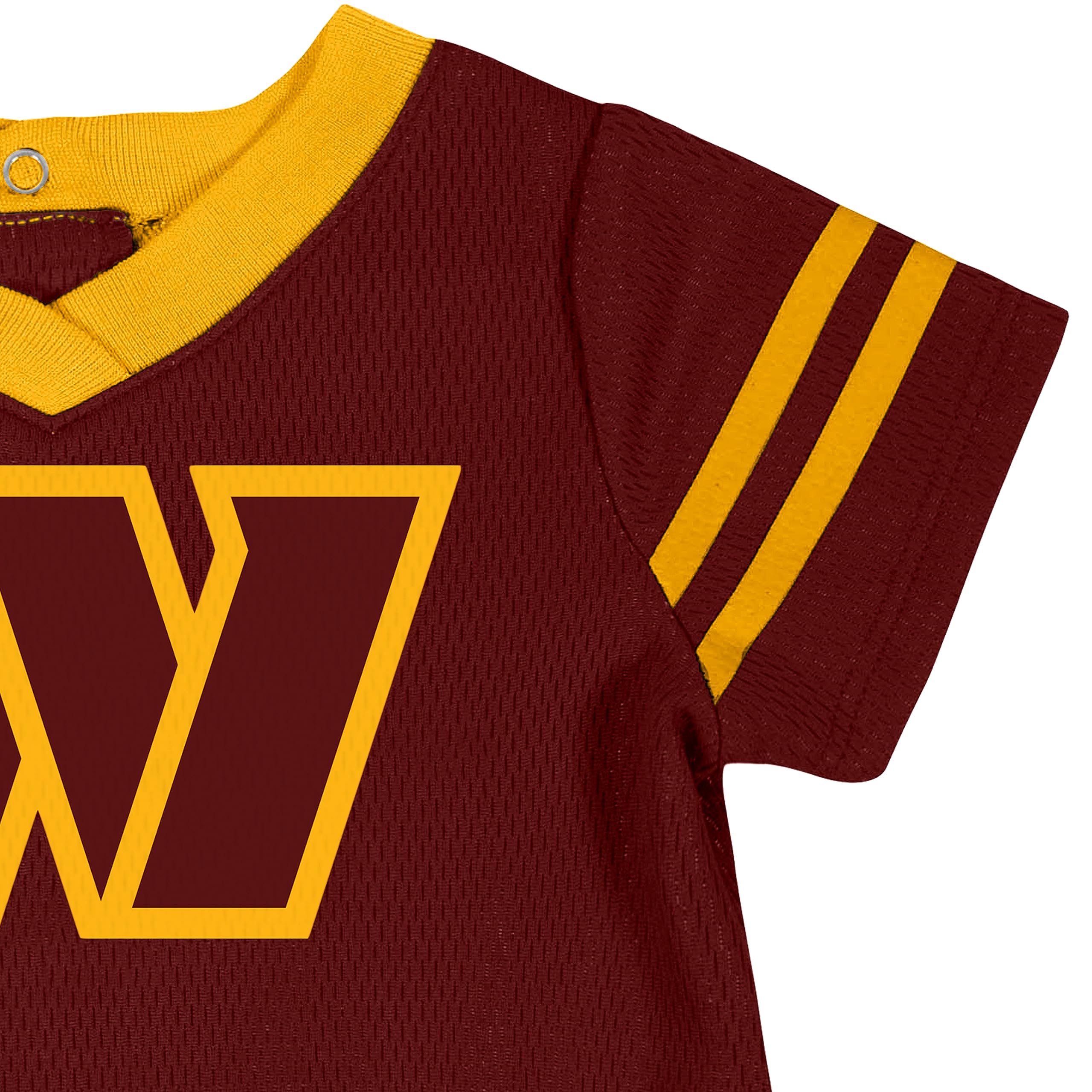 Description Don't leave any room for guessing which team your little girl pulls for on game day with this baby girls' dress and matching panty set! The 100% poly dazzle mesh and rib fabrics keep her comfortable on all of her adventures. The logo is proudly displayed on the front of the dress using big, bold screenprint artwork. Matching team colors help you create a look that's perfect for game day or any day you want to show your team pride! Just toss this outfit into the washer and dryer with the rest of the easy care items for quick and simple cleaning!