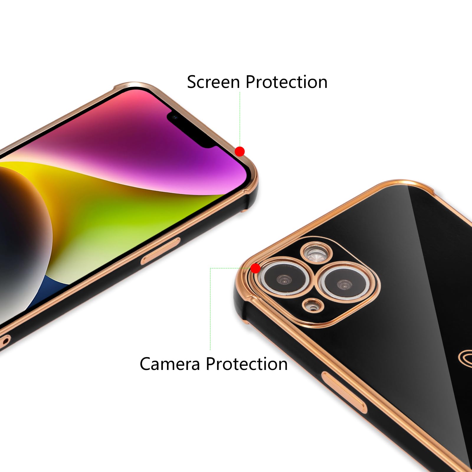 【Full Protection】- Upgrade 4 Raised bezel plated edges prevent your camera and screen from scratches and dirt,making your case for iPhone 14 Plus absolutely scratch resistant. Easy access to all controls and features;Perfect cut to fit speaker, camera and other ports