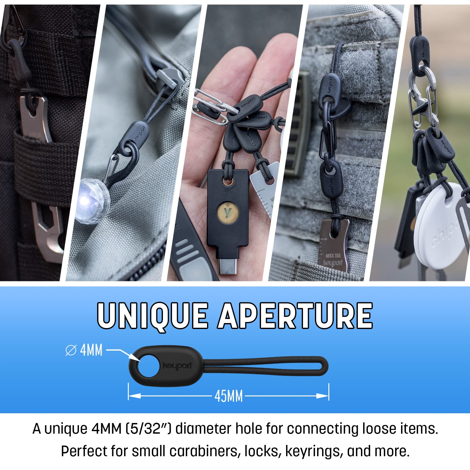 TOP QUALITY REPLACEMENT ZIPPER PULL x5 - Keyport designer zipper pulls are constructed out of the highest quality black nylon rope paracord. These nylon zipper pulls are durable, and stylish, and the zipper pull tab features a unique aperture (hole) measuring 0.16" (4mm) in diameter for connecting loose everyday carry items. As a result, they work as a great EDC lanyard string.