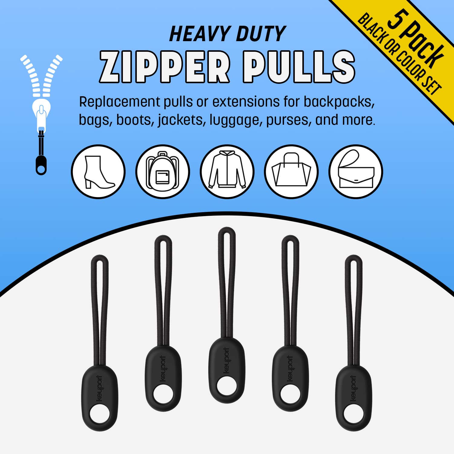 EXTEND, REPLACE, OR CONNECT - Keyport 5 zipper slider pulls make an outstanding zipper pull extender or an equally useful zipper replacement kit. They work great as a luggage zipper pull and serve double duty by connecting your bag tags. These nylon zipper pulls are a must-have in anyone's set of household tools. They also make zippers easier so that they are useful for the elderly and infirmed.