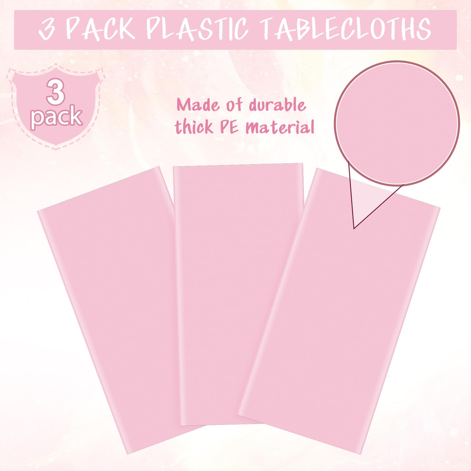 Packing Include: you will receive 3 pieces of plastic table cloth disposable for rectangle tables in light pink,this disposable tablecloth each measures 54×108 inches,which fits for most rectangle tables of 8-10 seats,sufficient quantities can meet your use and replacement needs.