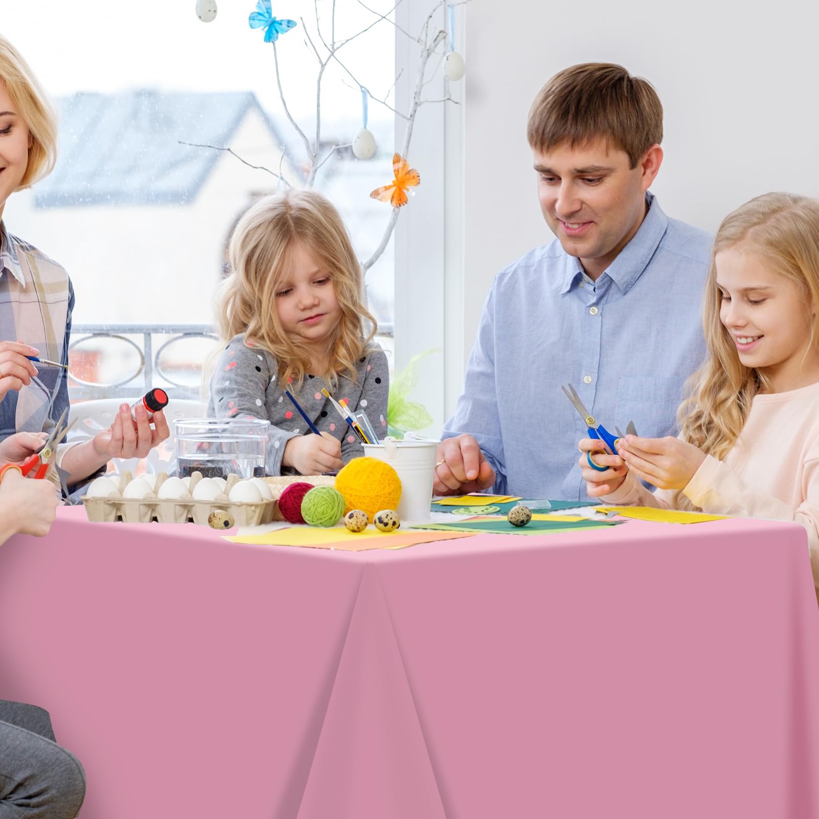 Quality Material:our pink tablecloth is made of high quality plastic material,it is waterproof,sturdy,dirt resistant and has a smooth surface,not easy to damage and can keep stains away,easier to clean.And light weight makes it easy to use indoors and outdoors.