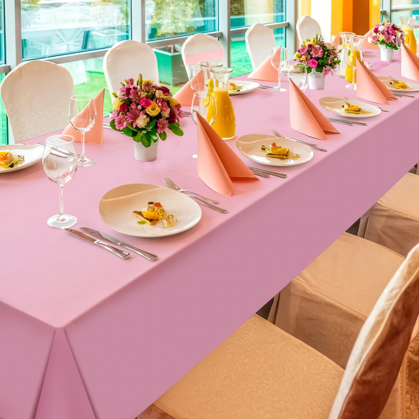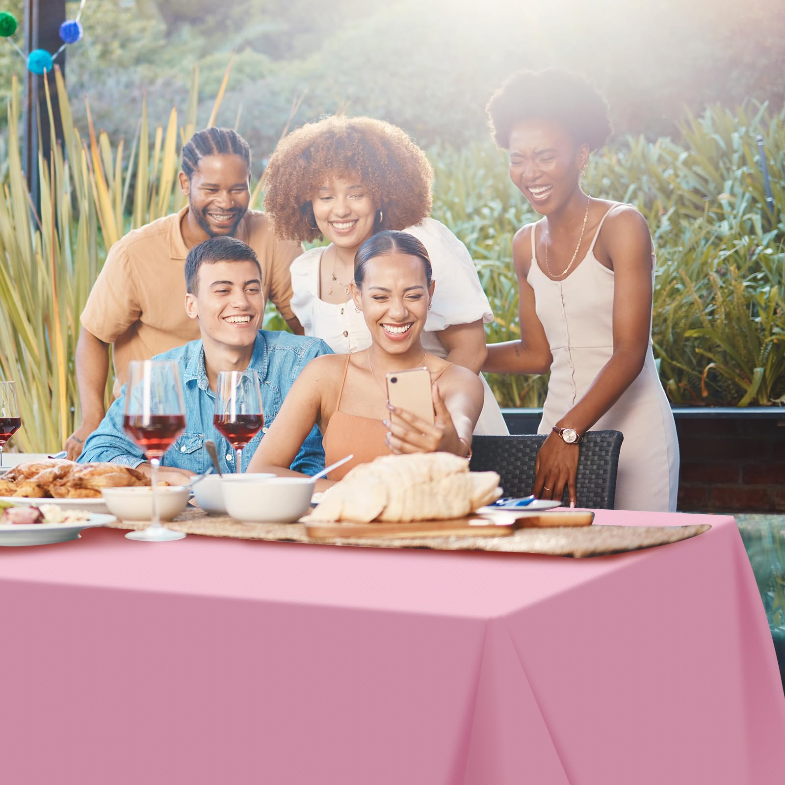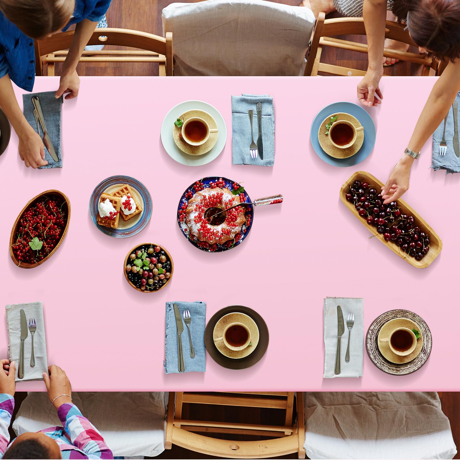 Solid Colors: as you can see in the pictures,our pink plastic tablecloths are solid colors,simple and classic,bright and attractive,presenting a pleasant visual effect,which could bring you an unforgettable party experience and create a strong atmosphere.