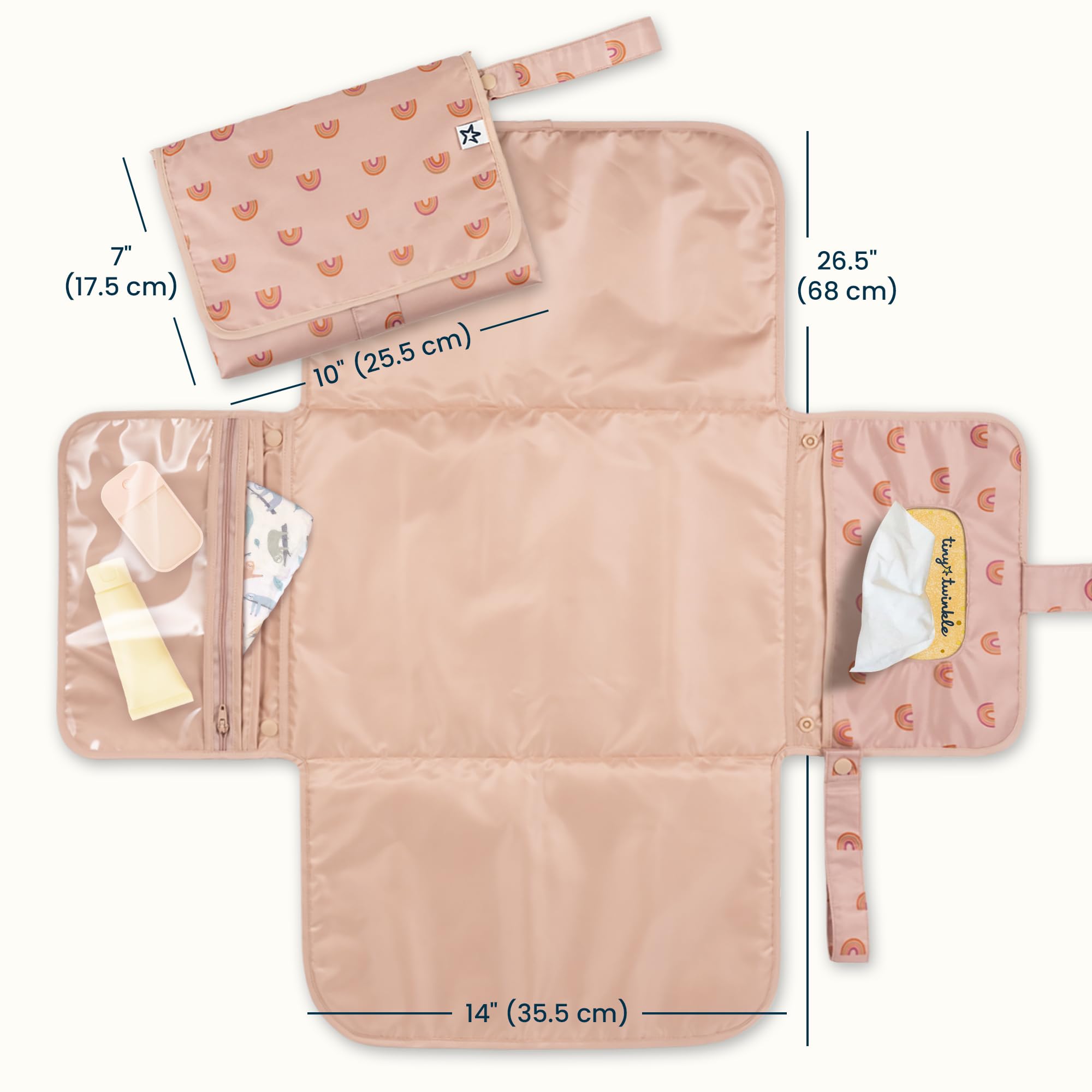EASY TO CARRY: Our Changing Pad wipes clean and folds flat to 7x10 inches for easy storage, and clips to strollers or diaper bags with a secure snap-loop handle—lightweight and ready wherever you go.