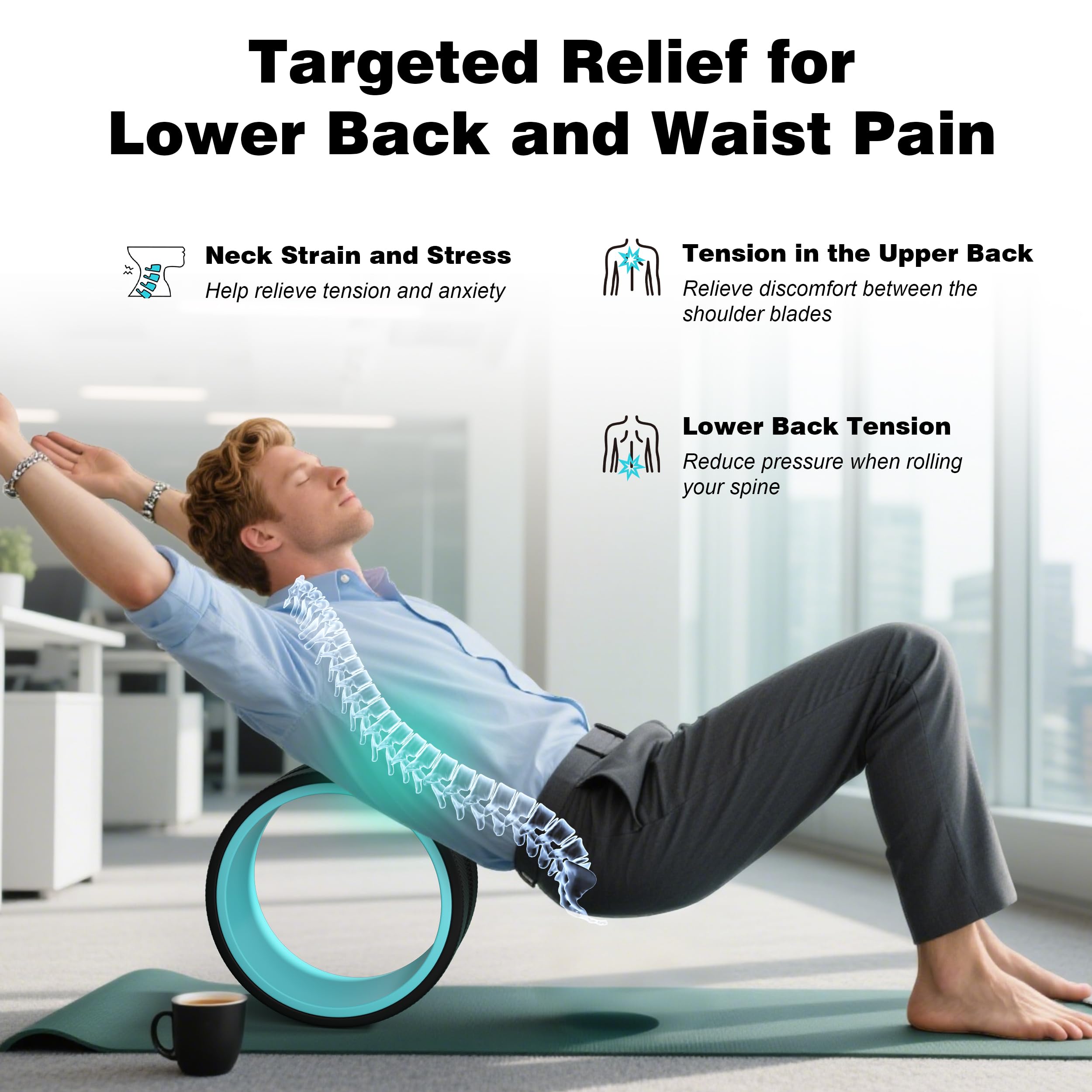 EASY TO USE: Our back pain relief wheel is versatile and easy to use. Whether you prefer targeted pressure or a greater chest-opening effect, simply sit, place the wheel at your back and lean for an at-home massage. Use it anywhere for maximum comfort and roll away back pressure quickly, in under 5 minutes a day.