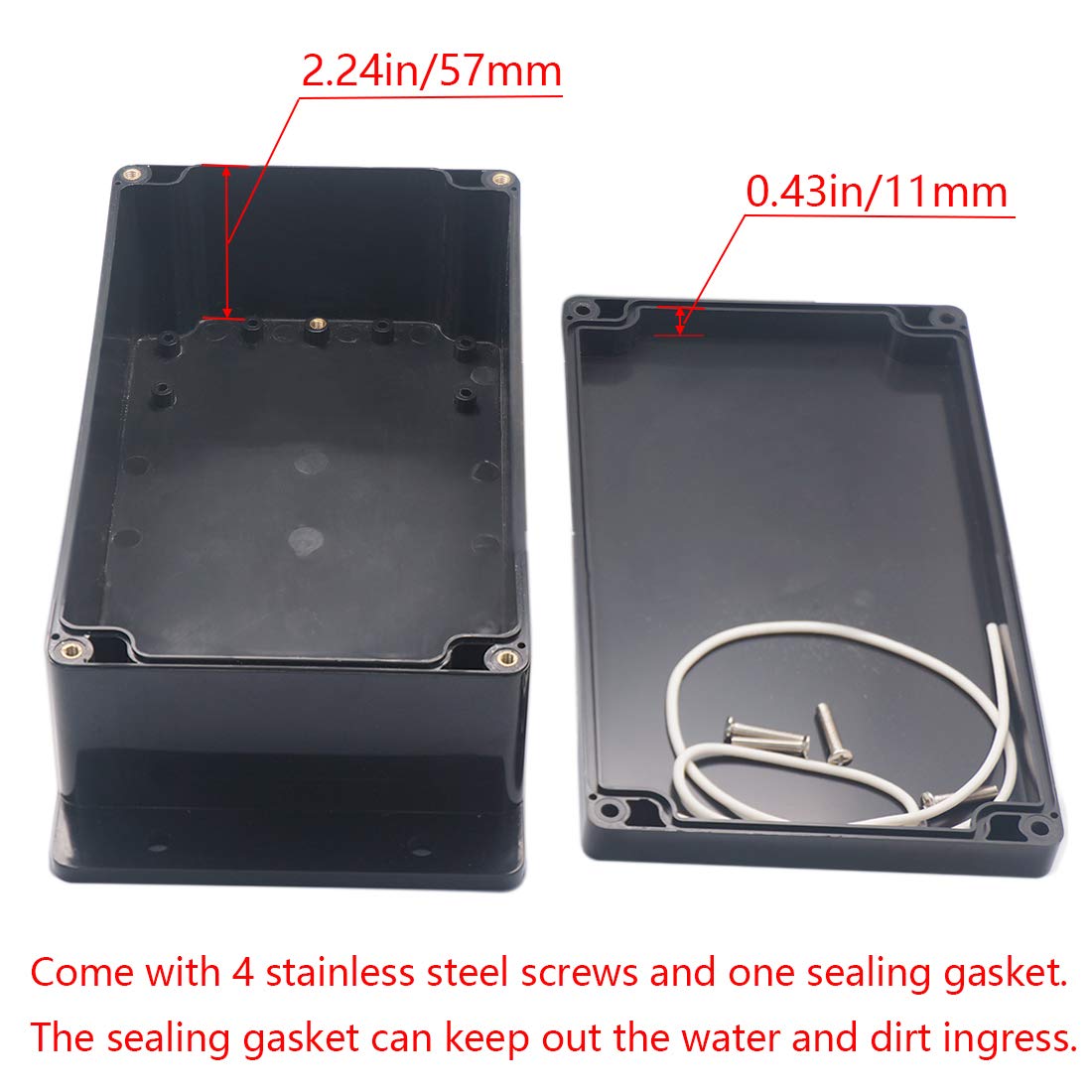 【Size】- Outer size of the project box: 7.87"x 4.72"x2.95"(200 x 120 x75 mm); Inner size of the project box:7.52" x4.37" x 2.68" (191 x111 x68mm)