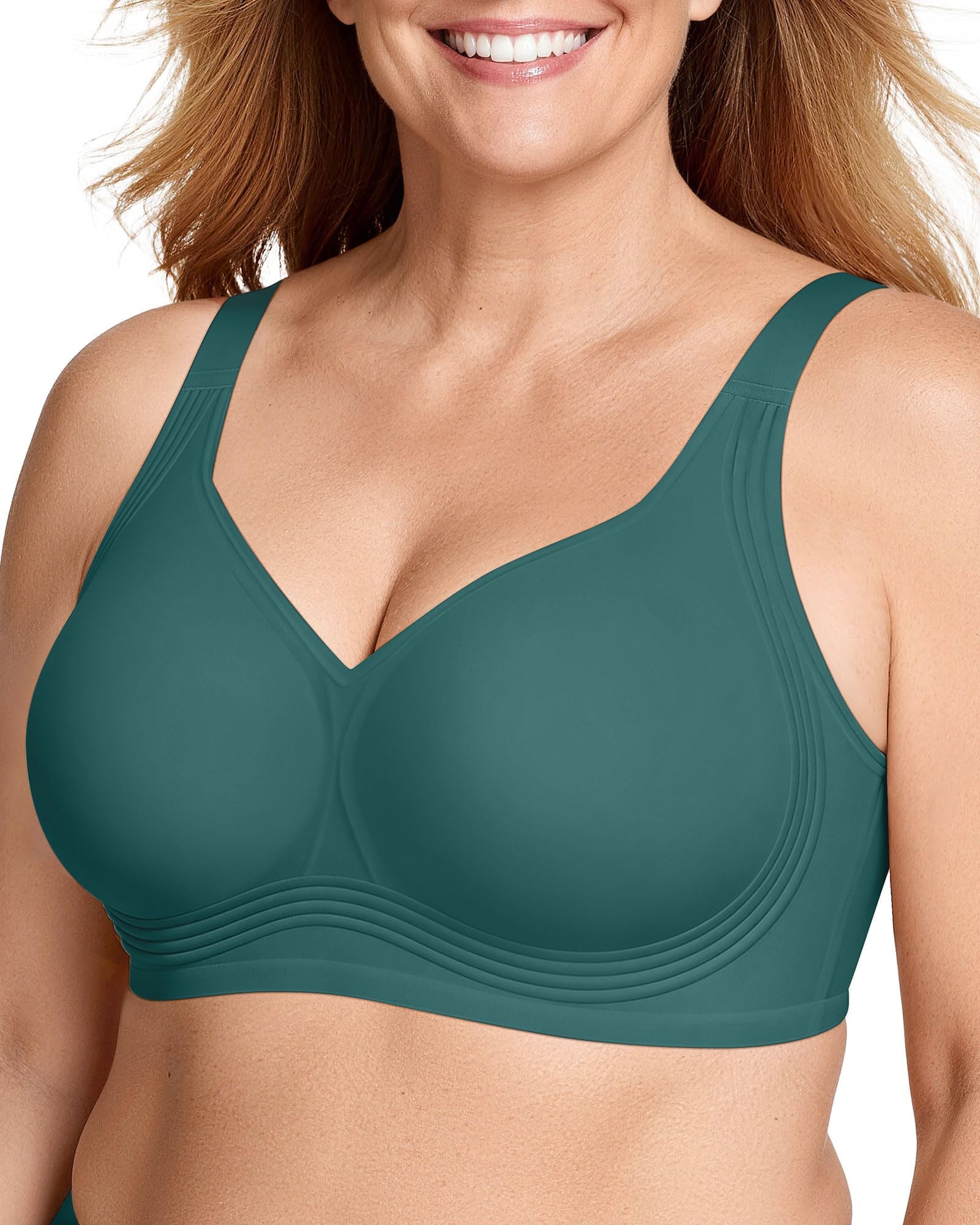 Back-Smoothing Design - This wireless bra combines an innovative widened side wing design with a 5-row, 4-buckle back closure (plus free extender) for adjustable support. Its U-shaped back and widened side wings seamlessly smooth back fat and underarm bulges. The high side ratio design securely wraps fuller busts to prevent side spillage, and the semi-fixed padding stays perfectly in place during both wear and washing for effortless comfort.