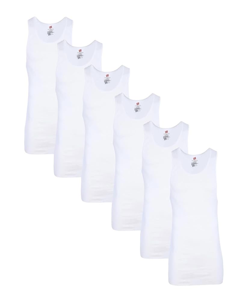 Description Hanes® men's cotton tank multipack is made from high-quality cotton that's preshrunk to hold its size and shape wash after wash. Made with Hanes® Cool Comfort™ technology, it wicks moisture away from skin to keep you cool and dry during workouts and beyond. This versatile white tank is great for workouts, the beach, or even as an undershirt. It's designed with a banded neck and armholes that resist wear and tear and a finished hem that looks good worn out or tucked in. These breathable cotton tank tops are also available in multiple color and multipack options, so you can choose the one that works best for you.