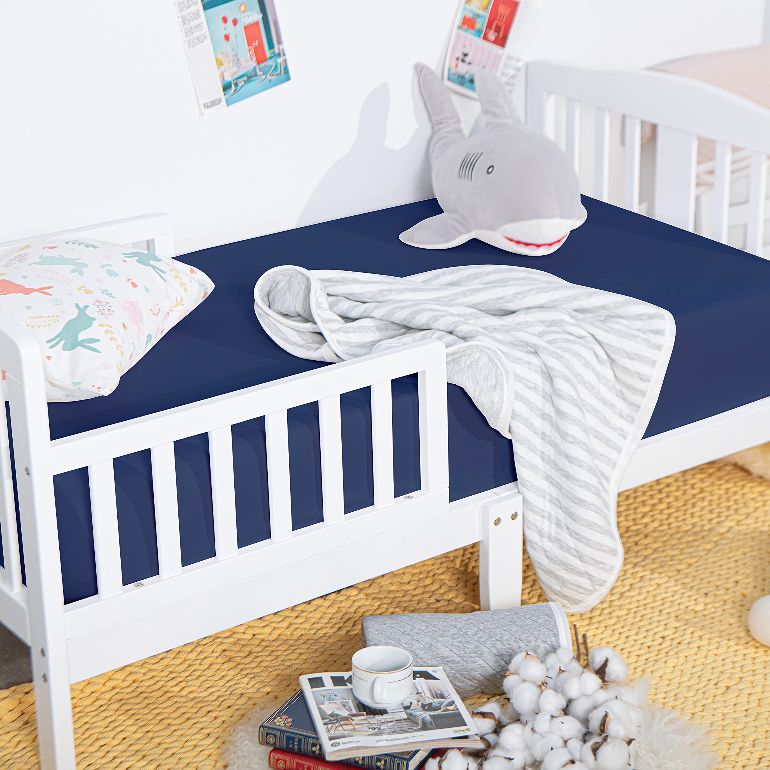 Soft, fade-resistant microfiber toddler fitted sheet: Made of nice quality microfiber fabric, smooth and soft, providing your baby and toddler a cozy and quiet sleep or daily rest. This microfiber fitted sheet is fade resistant and machine washable for easy care.