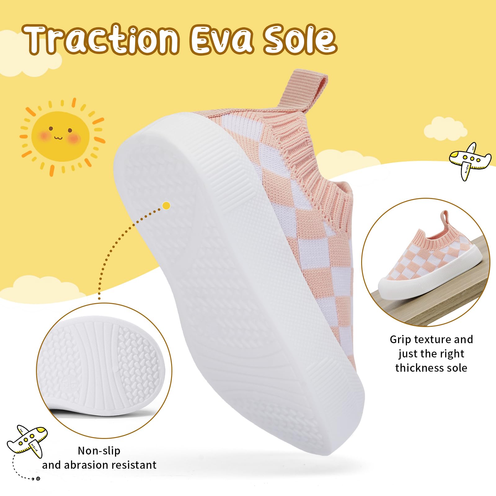 Non-slip Soles:Preventing your baby from slipping,soft, lightweight sole,a safe and cute sock sneakers for baby boys baby girls.