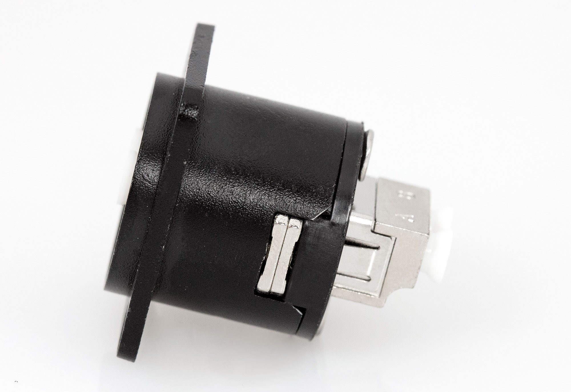 Top-quality Seetronic SO2-4FDW-B Optical pass-through panel mount, standard D-Series jack design used for creating customized rack or floor box configurations for Audio, Video, Light and Data applications.