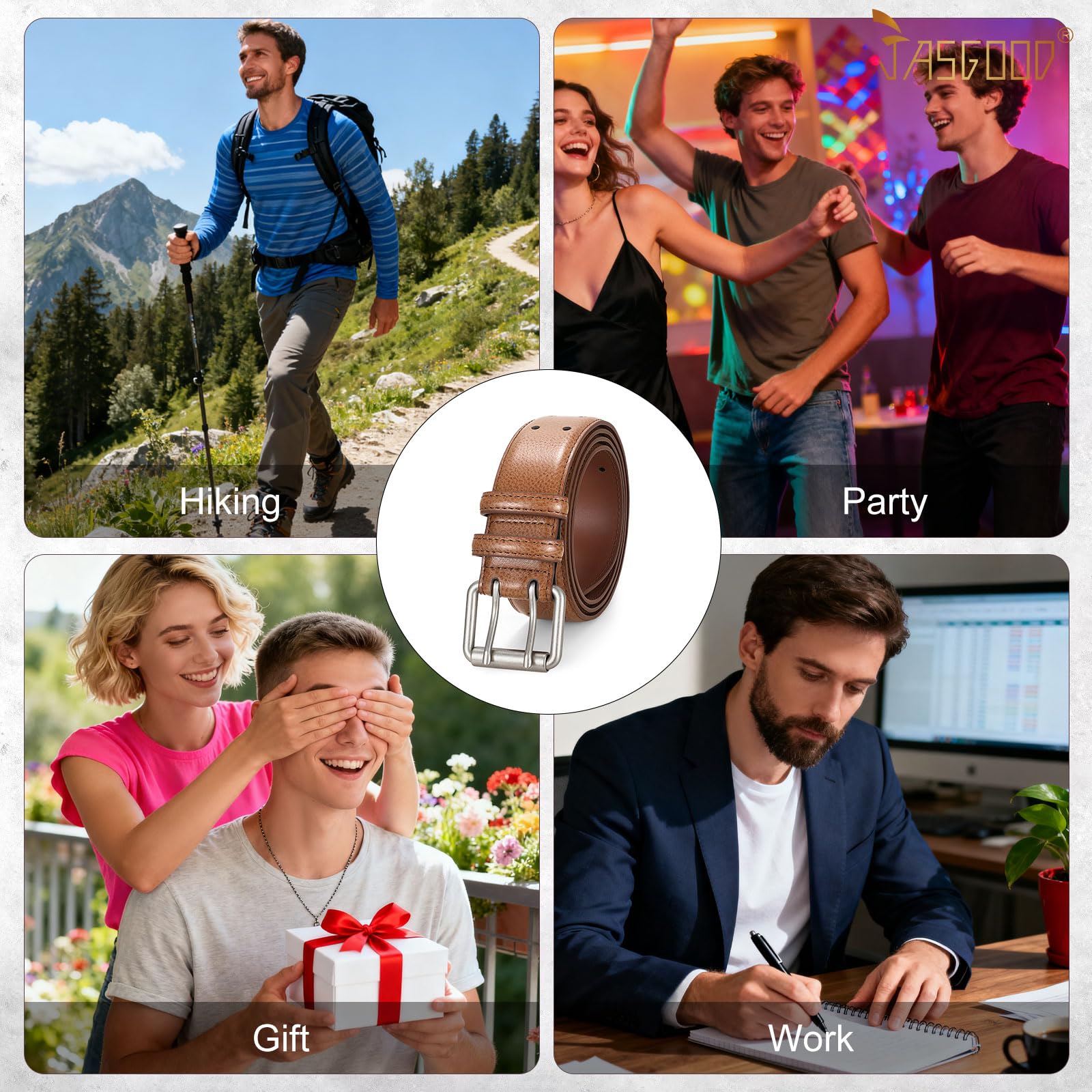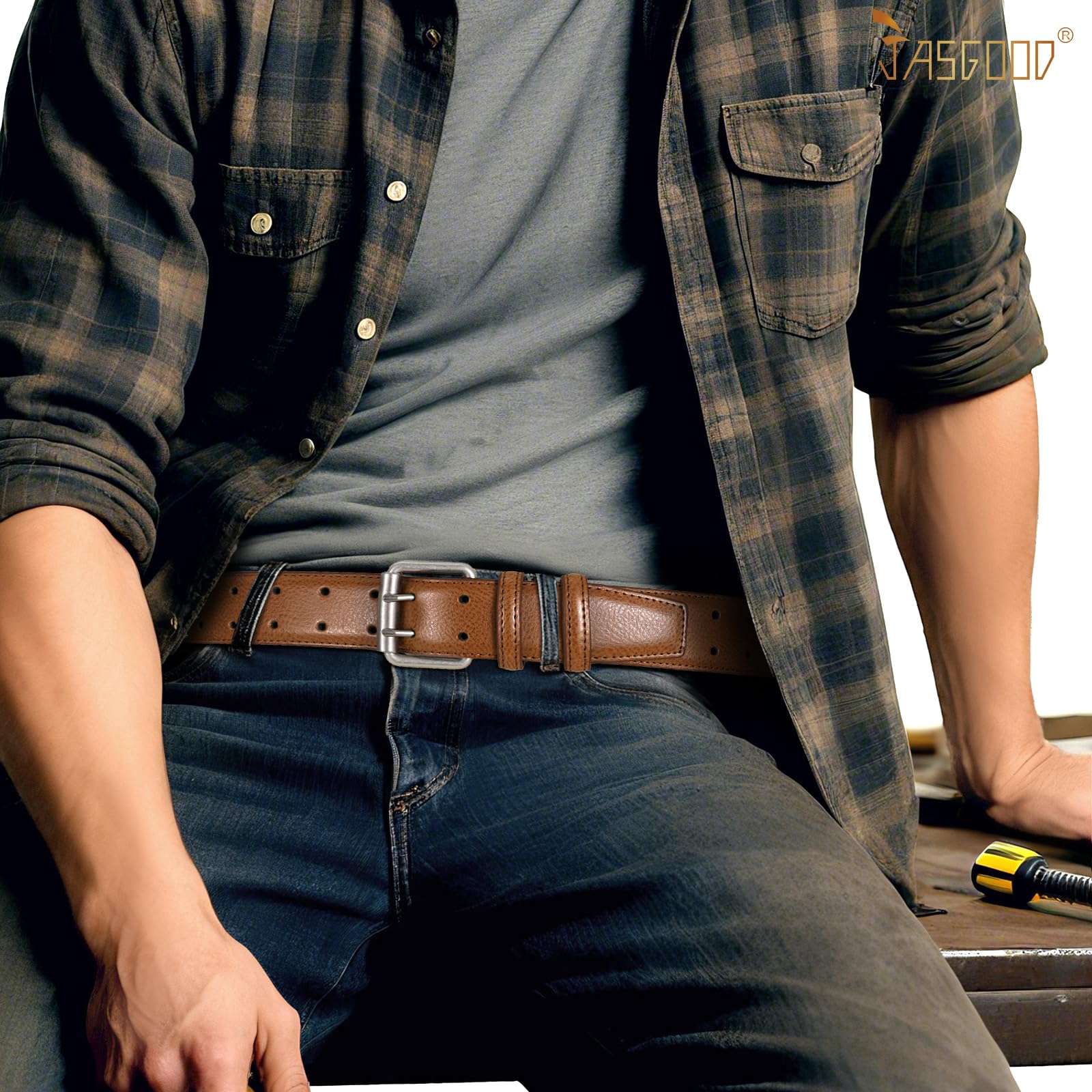 Men Work Casual Belt: This black leather belt can be your default belt that is great for work and a little stylish. Also great for our casual wear with jeans,pants. You can also use this belt to match your rock outfit. Belt width is 1.5" which can across most your pant loop to accessorizing your wardrobe.
